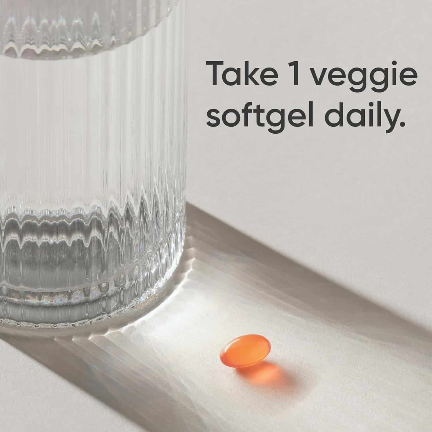 Directions – SUGGESTED USE. Adults take 1 veggie softgel daily with food, or as recommended by a qualified healthcare professional.