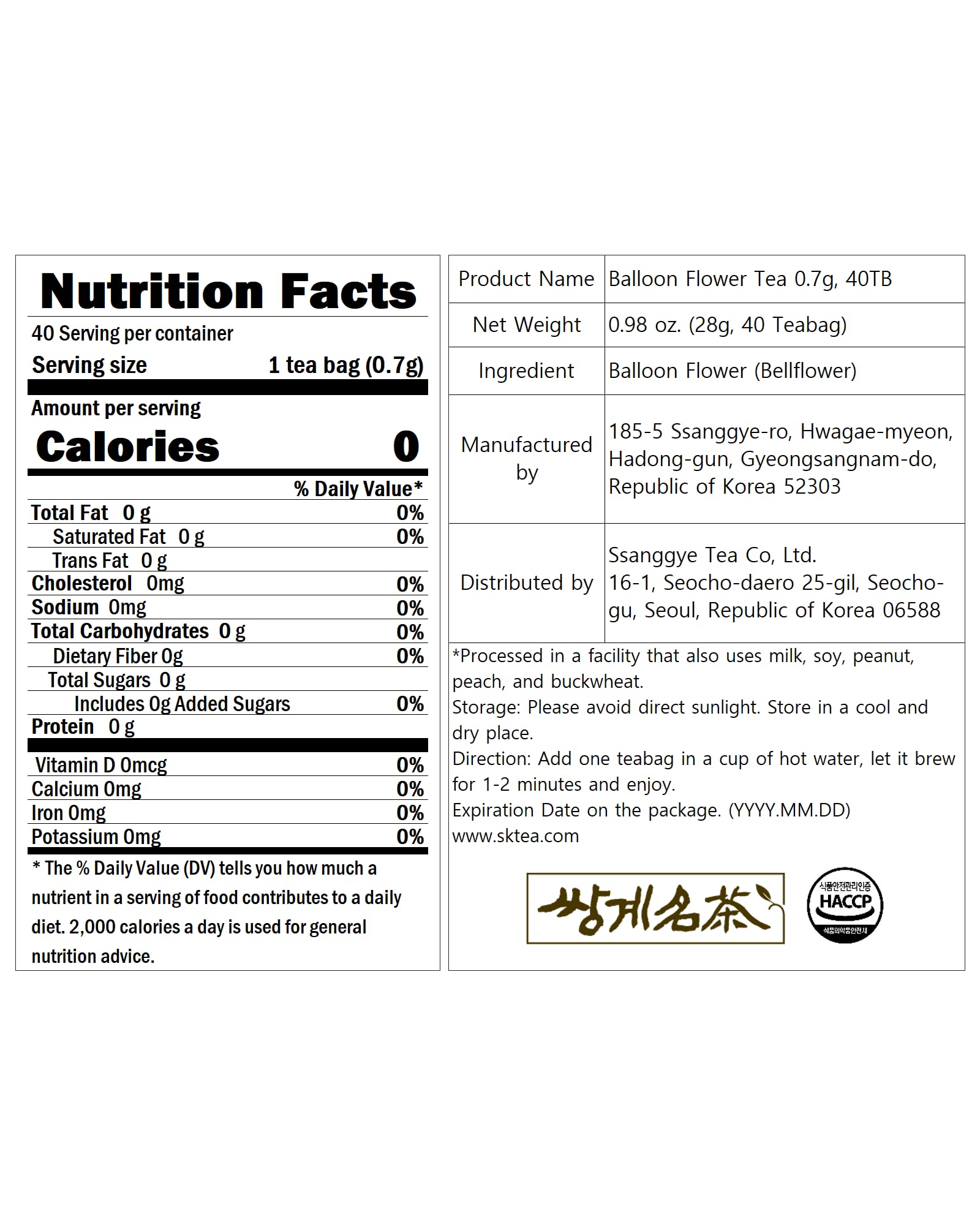 Ssanggye Balloon Flower Tea 0.7g x 40 Tea Bags100% Natural Herbal that is good for Cold Prevention, Hangover Relief, Bronchial Healthy by Korean Tea Master Mr. Kim [Health Benefits] 1. Saponin, which is abundant in bellflower roots, plays an excellent role in removing inflammation, removes phlegm, stops coughing, and is effective in bronchial and lung health. 2. Bellflower root helps protect the stomach and is good for relieving hangovers due to its ingredients that help quickly release acetaldehyde, the cause of hangovers. [Flavorful Tea] Made with 100% real ingredient. Each tea bag contains 100% Balloon Flower Root from South Korea for better health benefits and tastes. Enjoy soft and authenthic taste of the natural ingredient. No artificial additives and caffeine-free. You can sip away without worry. [Premium Tea Bag] Made of premium filter paper tea bags without staples for a fresher and flavorful brew. Packaged in an easy and convenient single tea bags individually wrapped. (Net Weight: 0.7g x 40TBs) [How to Brew] Put the tea bag in a teacup first, pour hot water, and shake it several times after 1 to 2 minutes. Otherwise, you can eat it cold with moderate ice in the brewed tea. [Customer Satisfaction Guarantee] If you are not 100% satisfied with your purchase of our Ssanggye Tea for any reason, contact us and we’ll refund your order in full, no questions asked. The Korean Tea Master Mr. Kim manages all precedures for the best quality. We guarantee that most fresh items will be shipped.