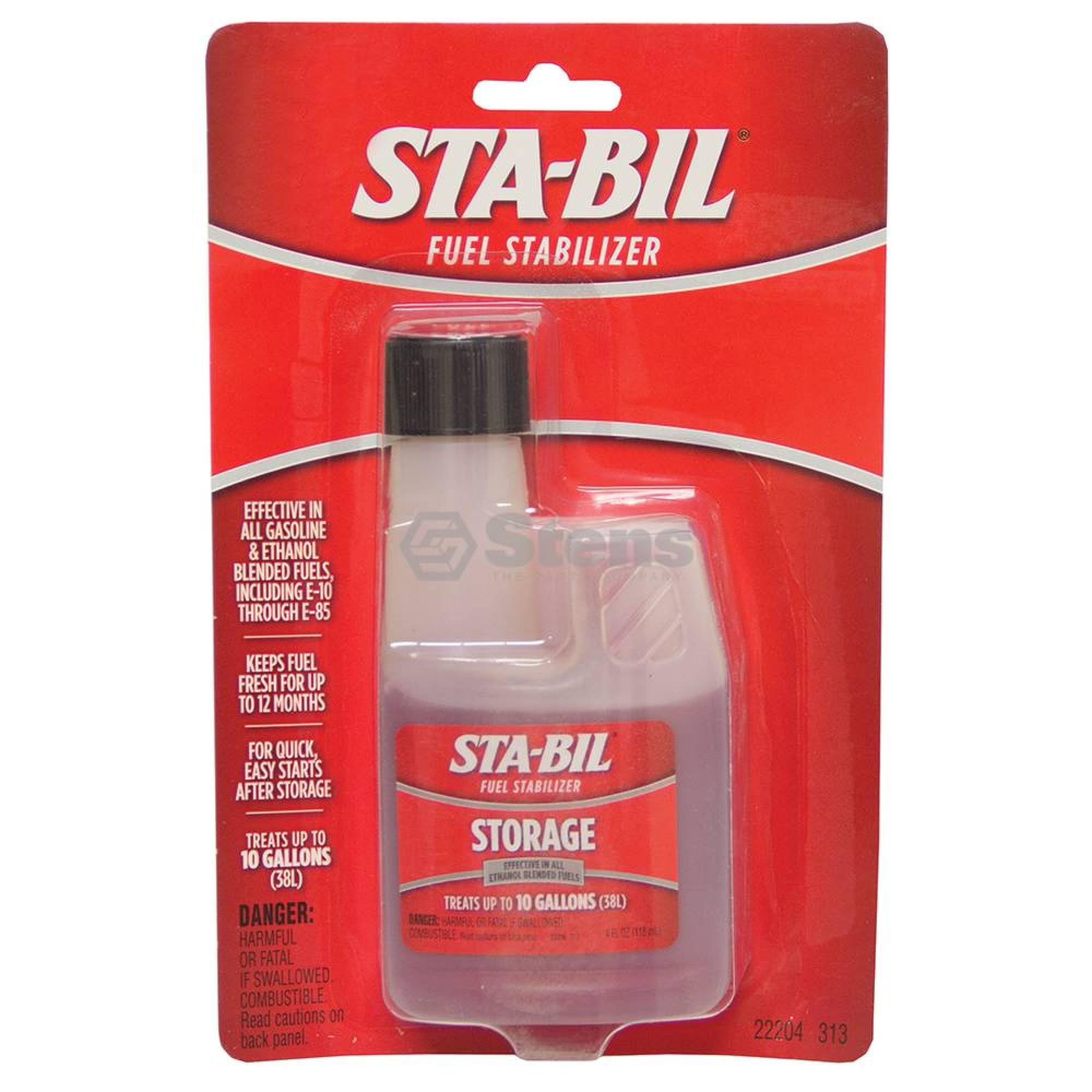 - Directions – Pour contents directly into the fuel tank before adding gasoline. Use 1 oz of STA-BIL Storage for every 2.5 gallons of gas. After adding the fuel, run the engine for 5 minutes to treat the entire fuel system.