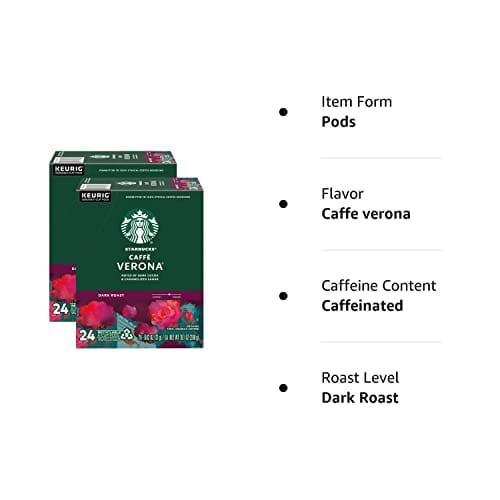 Starbucks Coffee K-Cup Pods, Caff? Verona, Dark Roast Coffee, Notes of Dark Cocoa & Caramelized Sugar, Keurig Genuine K-Cup Pods 24 Count (Pack of 2)