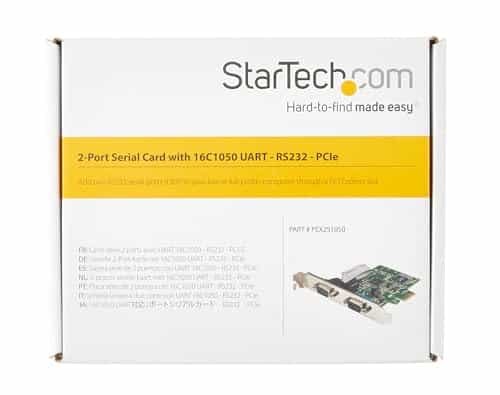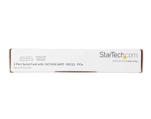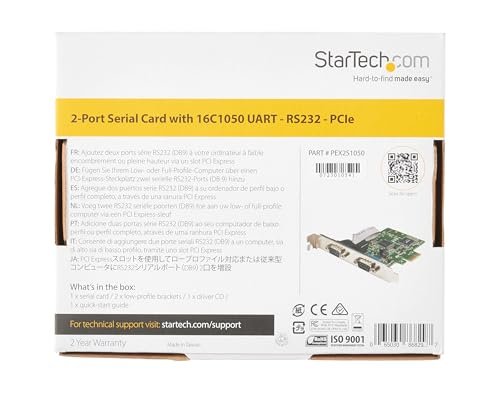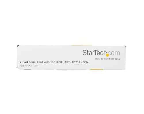 This 2-port PCI express serial card adds two high-performance RS232 serial ports to your device, for connecting your serial-based devices and equipment. The dual port serial PCI express card can be installed into an available PCI Express slot, to provide two high-performance 16C1050 RS232 serial UART channels/ports. It offers a convenient solution for connecting modern or legacy equipment to newer computer systems that don’t have RS232 ports. The low-profile serial card is compliant with PCI Express 1.0a specification, and it’s compatible with 1x, 2x, 4x, 8x and 16x PCI Express slots. The PCI express serial adapter delivers high-performance serial communication, with support for data transfer rates of up to 460Kbps. The PCI express RS232 card provides CPU load decrease which helps ensure optimal system performance and prevent errors. In addition, the dual-channel UART card ensures smooth performance, even while both ports are in use. The low-profile serial card is easy to install and configure, with support for a broad range of Windows operating systems. Plus, the dual port serial PCI express card features IRQ sharing and supports plug-and-play serial device connections. hassle-free installation. The PCI express serial adapter comes with a standard-profile bracket installed, and also includes an optional low-profile bracket. The DB9 to PCIe serial expansion card is backed by a StarTech..