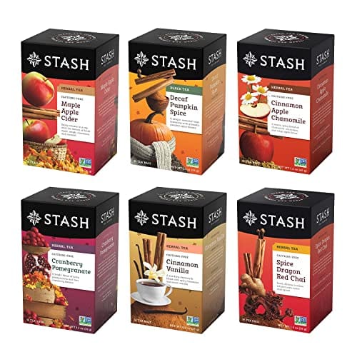 Stash Tea Fall for Autumn 6 Flavor Tea Sampler, 6 Boxes With 20 Tea Bags Each (120 Tea Bags Total)