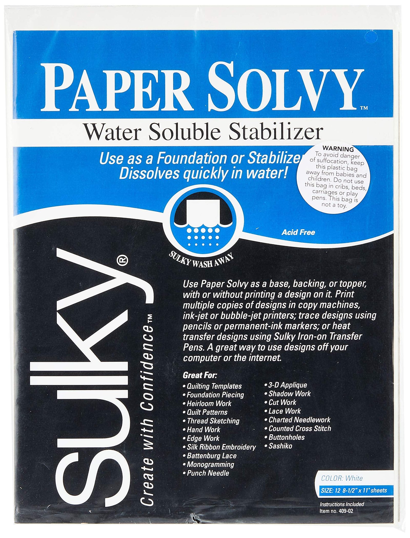 Sulky 409-02 Paper Solvy Water Soluble Fabric Stabilizer, 8-1/2 by 11-Inch, 12 Per Package