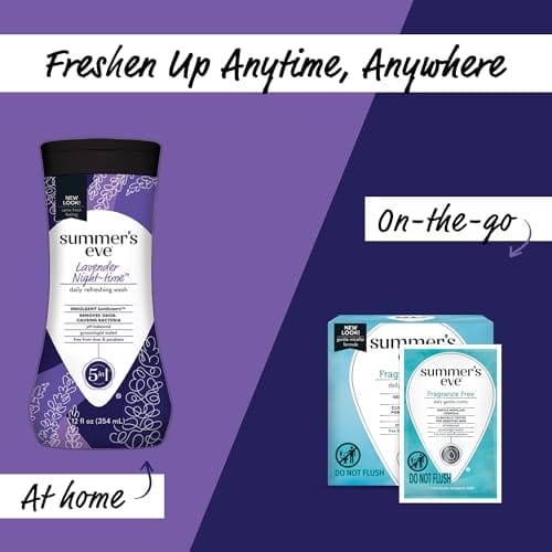 A refreshing, cleansing experience for your intimate area so you can take on anything. Summer’s Eve Refreshing feminine care products comes in a variety of indulgent SafeScents letting you experience that unique, everyday Summer?s Eve readiness. Summer’s Eve Feminine Body Wash is created for your most intimate areas to gently cleanse away the bacteria that can cause odor. Uniquely formulated and pH-balanced to match your body’s natural chemistry. All Summer’s Eve feminine hygiene products, along with every unique scent, are gynecologist tested to ensure they are safe, even for sensitive skin. Summer’s Eve Lavender Night-time Daily Refreshing Feminine Wash removes odor-causing bacteria down there. That?s why millions of women trust our expansive range of gynecologist-tested cleansing and care. Our wide variety of products are made for everybody ? whether you?re at home or on the go, want to bask in fragrant lusciousness or no scent at all or want ultra-Refreshing or high performance. With every Summer?s Eve product you use, know that We See You, We Get You, We Got You. Sunburn Alert: This product contains an alpha hydroxy acid (AHA) that may increase your skin’s sensitivity to the sun and particularly the possibility of sunburn. Use a sunscreen, wear protective clothing, and limit sun exposure while using this product and for a week afterwards.