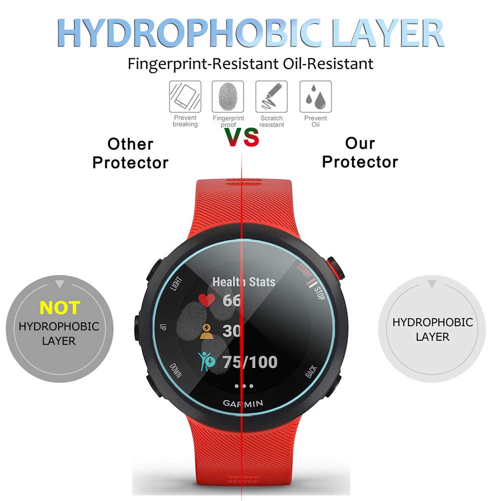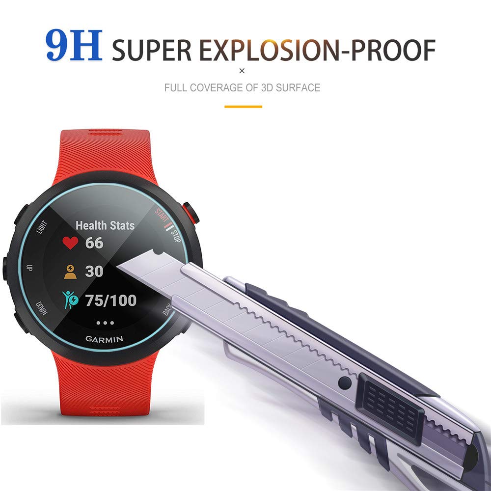 Compatible model: Perfectly Fit for Garmin Forerunner 55 / 45 / 45S Screen Protector Smartwatch?Function and Features ?Bubble-Free: easy to install and there is no bubble or other bad effectAnti-fingerprint: fingerprints will quickly disappear automatically in the protective glass.2.5D Full Screen Coverage: all-new product with full cover screen, including the screen and edges. full protection, not affect touch.Make by high quality industry-grade 9h hardness glass, Prevent accidental wear and other scratchesHD Clear: 0.25mm thickness / 99% transparency, hydrophobic, anti-oil and anti-fingerprint coating, provides you with crystal clear viewing experience.?Welcome to contact us if you have any question about product, installation or use process. Diruite will do the best service for you, until solve your problem?