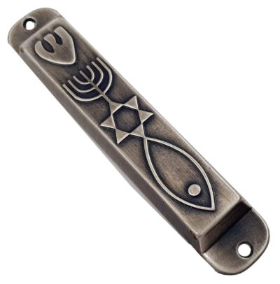 Original price was: ₹5,259.₹3,393Current price is: ₹3,393.TALISMAN4U Pewter Messianic Mezuzah Case with Scroll for Door 3D Menorah Messianic Seal 10