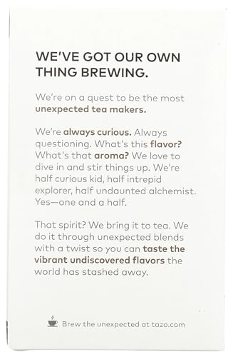 TAZO awake english breakfast black tea is a bold blend of black teas with a bright and malty flavor to invigorate you any time of the day. Each 8 ounce serving has at least 61 mg. Of caffeine with our standard brewing methods. Our black breakfast tea is Non-GMO project verified and sourced naturally, so you can sip blissfully. Includes twenty filterbags of TAZO awake english breakfast black tea.