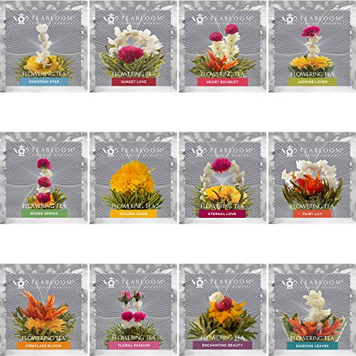- 12 SIGNATURE FLOWERING TEA VARIETIES IN EVERY CANISTER. The flowers in this set are our perennial best-sellers, including Heart Bouquet, Jasmine Lover, Golden Oasis, Floral Passion, Sunset Love, Fairy Lily, Eternal Love, Rising Spring, Shooting Star, Fireplace Bloom, Dancing Leaves and Enchanting Beauty.