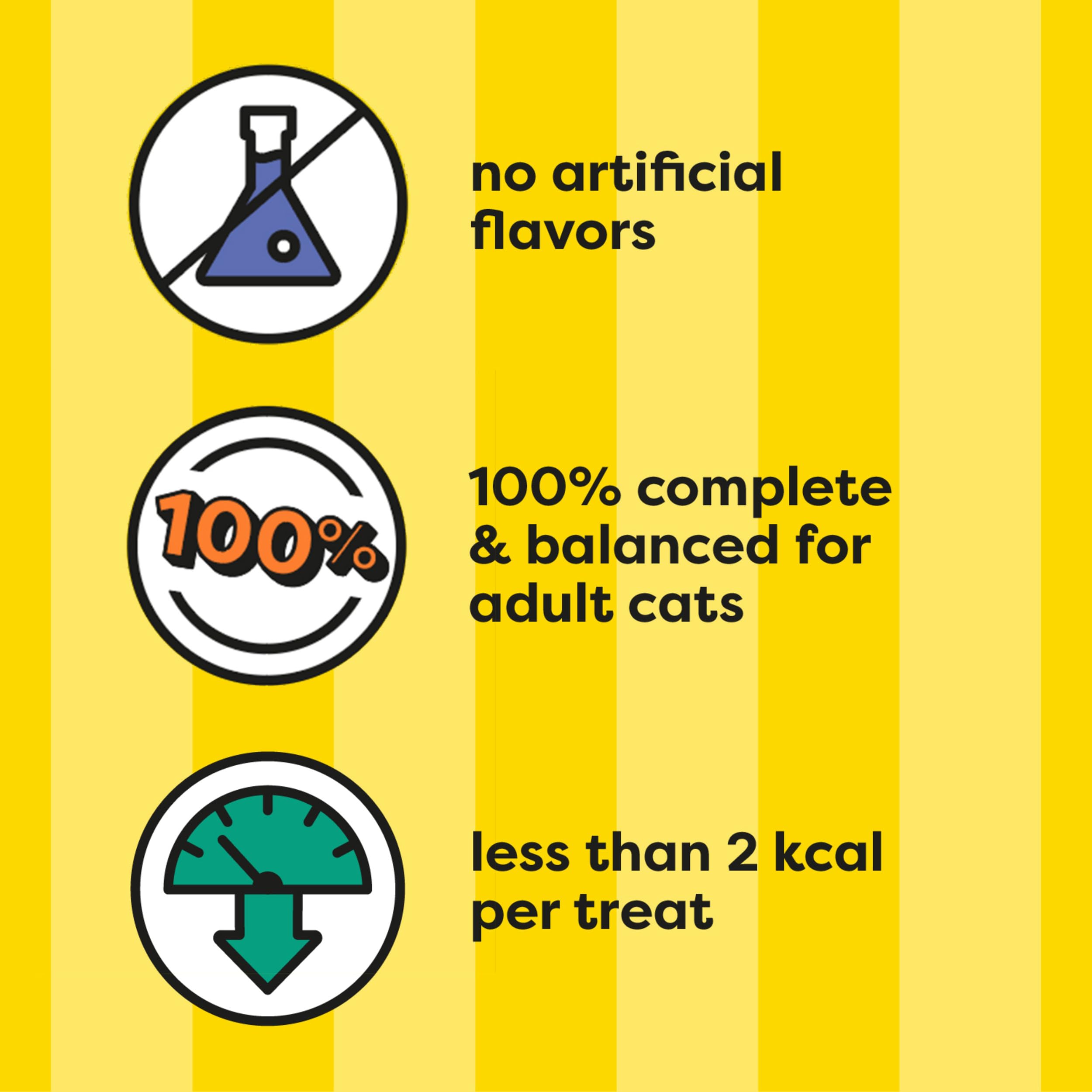 - Under 2 calories per tuna flavor cat treat, so you can feel good about rewarding your cat every day