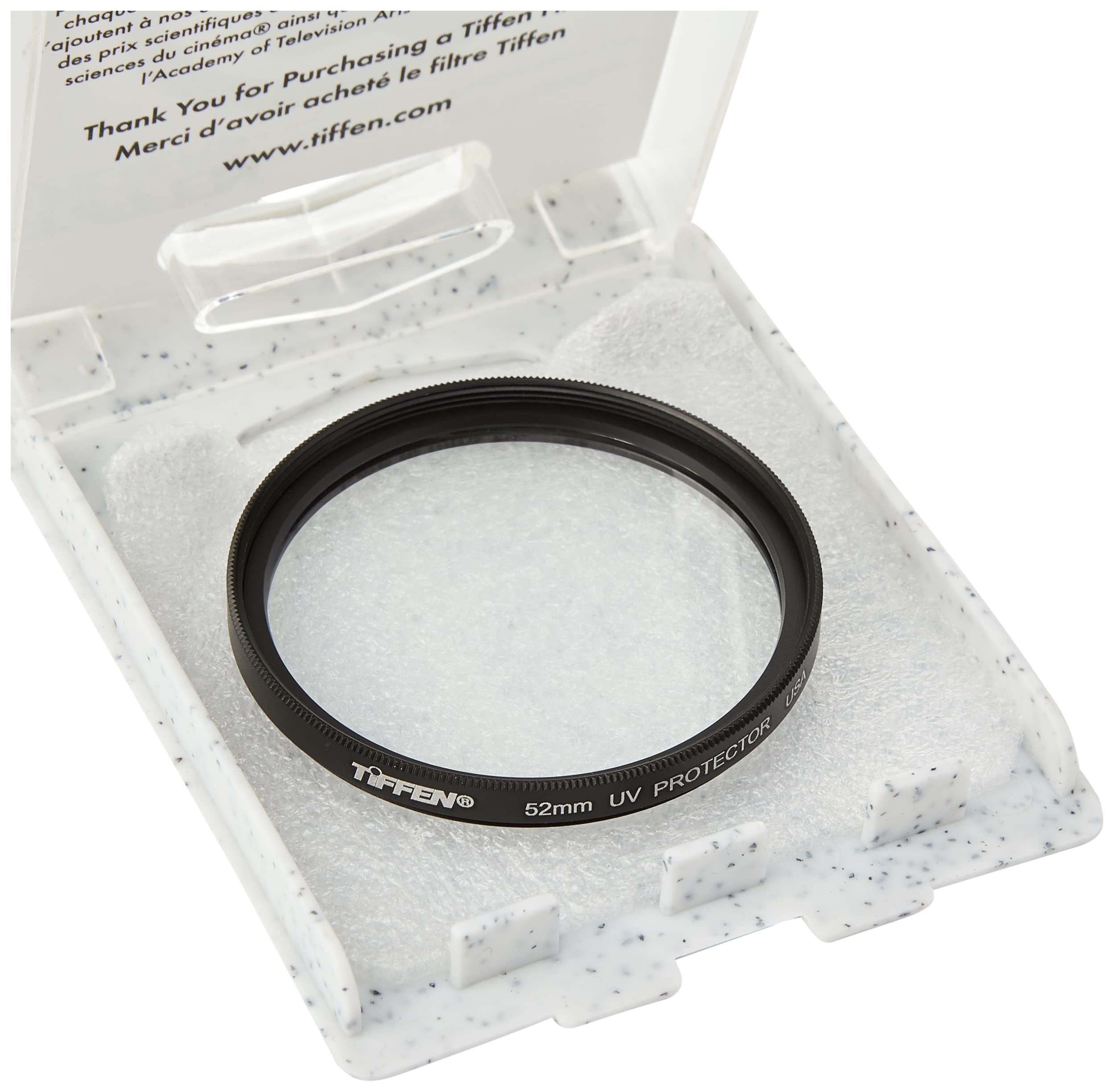 Tiffen UV Protection filter Film, as well as video, often exhibits a greater sensitivity to what is to us invisible, ultraviolet light. This is most often outdoors, especially at high altitudes, where the UV absorbing atmosphere is thinner; and over long distances, such as marine scenes. It can show up as a bluish color cast with color film, or it can cause a low contrast haze that diminishes details, especially when viewing far away objects, in either color or black and white. Ultraviolet filters absorb UV light generally without affecting light in the visible region. Using a Tiffen UV Protector on your Digital HD DSLR While the UV Protection filter served its purpose in the film era for many years it will still continue to be one of the most popular choices in accessories today. Digital cameras have blocks, auto correction and digital filters that combat the bluish color cast therefore making the UV Protection filter a simple protector for your lens to combat dirt, fingerprints & that fateful knock or drop. Who are Tiffen? Tiffen has been a leading manufacturer and supplier of photographic filters and lens accessories for the consumer/professional imaging and the motion picture and broadcast television industries for 75 years. The company has a rich history of innovative product design, superior optical consistency and unparalleled quality. Tiffen has been recognized for its product and engineering excellence, earning a Technical Achievement Award and a Scientific and Engineering Award from the Academy of Motion Picture Arts & Sciences, as well as an Emmy Award from the Academy of Television Arts and Sciences. Features. Low profile black ring. Basic UV Protection. Protects your lens against dust, dirty & knocks. Made in the USA. 10 years warranty. The box contains: 1 Filter and 1 Filter brochure.