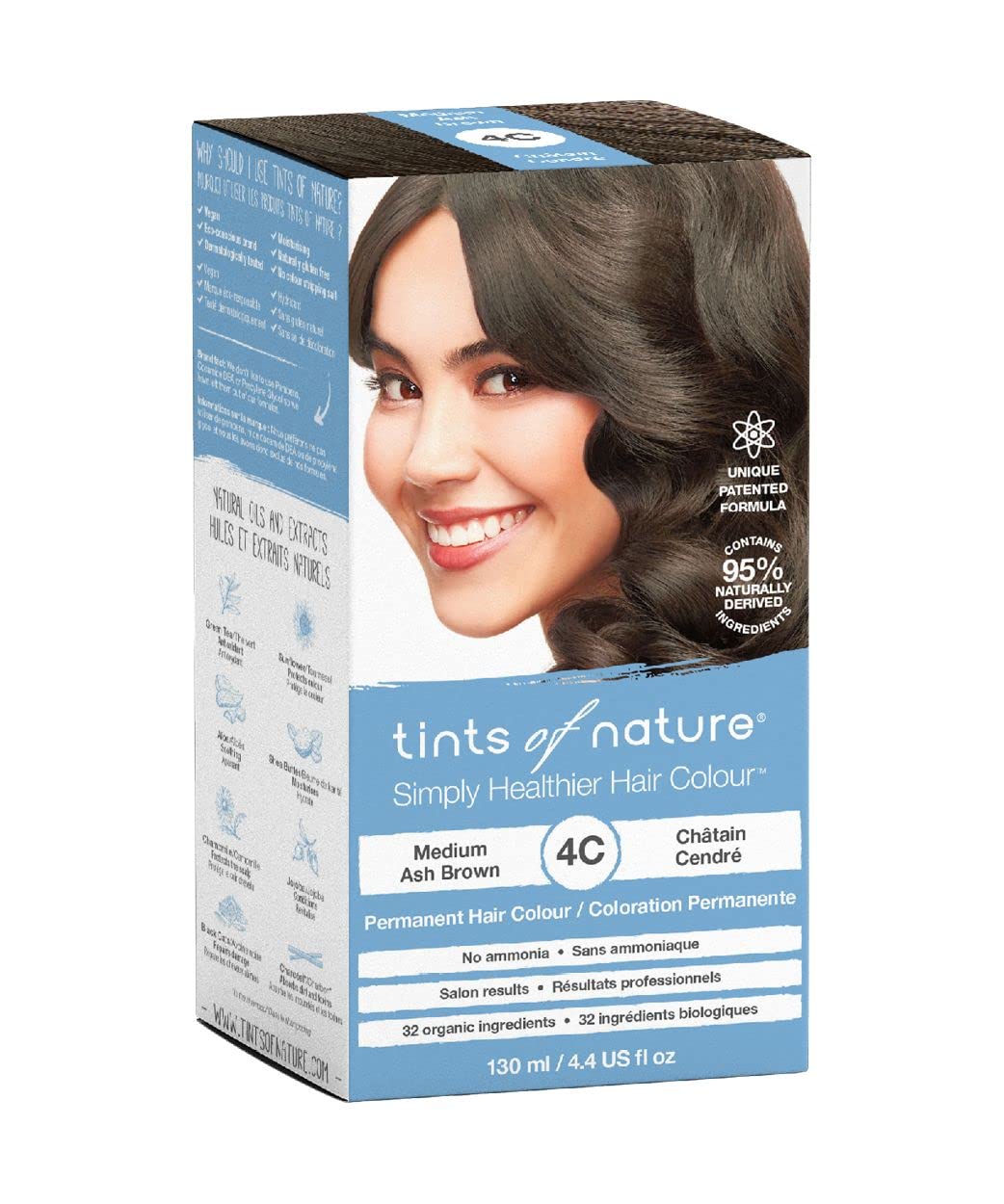 Original price was: ₹6,930.₹4,471Current price is: ₹4,471.Tints of Nature 4C Medium Ash Brown Permanent Hair Dye, Nourishes Hair and Covers Greys, Ammonia-Free, 130ml
