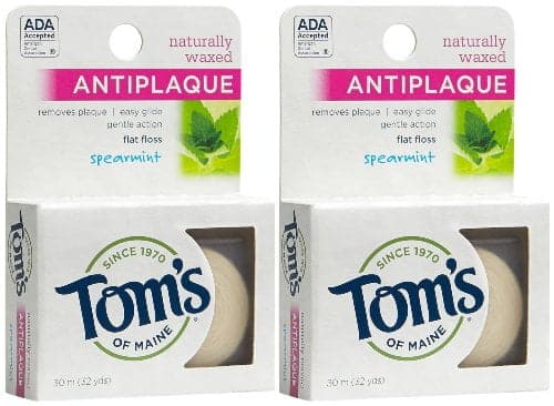 Strong between teeth, yet gentle on gums. Tom’s of Maine Naturally Waxed Spearmint Floss easily glides and naturally waxed nylon filaments prevent snapping or fraying while removing particles efficiently and thoroughly to help keep teeth and gums healthy.