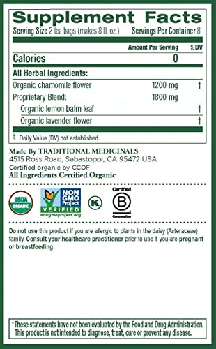 Original price was: ₹11,180.₹7,213Current price is: ₹7,213.Traditional Medicinals Organic Chamomile & Lavender Herbal Tea, Settles Nervous System, (Pack of 2) – 32 Tea Bags Total