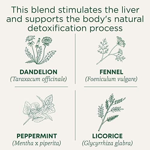 Herbal Power: Stimulates the liver and supports healthy kidney function Taste: Slightly sweet with notes of peppermint. Plant Story: Herbalists have celebrated dandelion for thousands of years for its ability to aid the body?s natural detoxification processes, particularly the kidneys. Using some of our favorite dandelion from the wild meadows of Southern and Eastern Europe, we created this blend to help your body reset and refresh.*