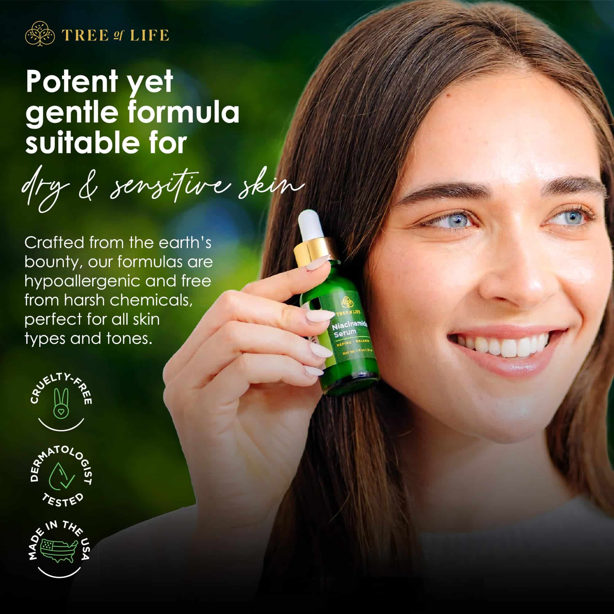 - DERMATOLOGIST-TESTED & CRUELTY-FREE: Packed with thoughtfully-chosen ingredients you can feel good about! Tree of Life’s commitment to your skin’s health is backed by rigorous dermatologist testing, ensuring top-quality care, while steadfastly maintaining cruelty-free standards.