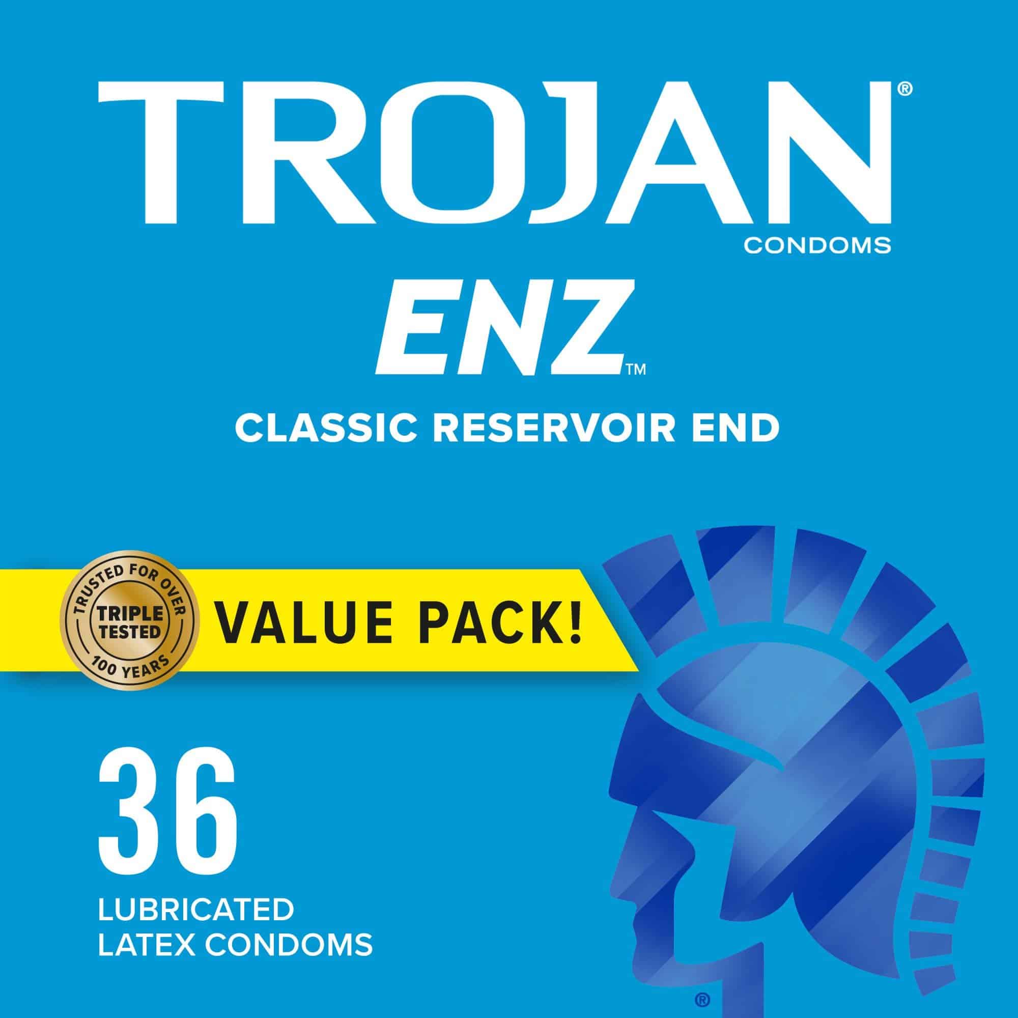 - One 36 count box of TROJAN ENZ Lubricated Condoms feature a silky-smooth lubricant for comfort and sensitivity