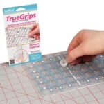 The Grace Company-True Grips Non Slip Adhesive Rings. Apply these little rings to the back of any ruler to increase safety and cutting accuracy by preventing slipping. True Grips Adhesive Rings are transparent so your project visibility is not impaired. Though designed for quilting, these rings work on any ruler and are great for any craft that uses a rotary cutter including scrapbooking and fabrics! This package contains fifteen 3/4×3/4 inch adhesive grips and fifteen 1/4×1/4 inch adhesive grips. Imported