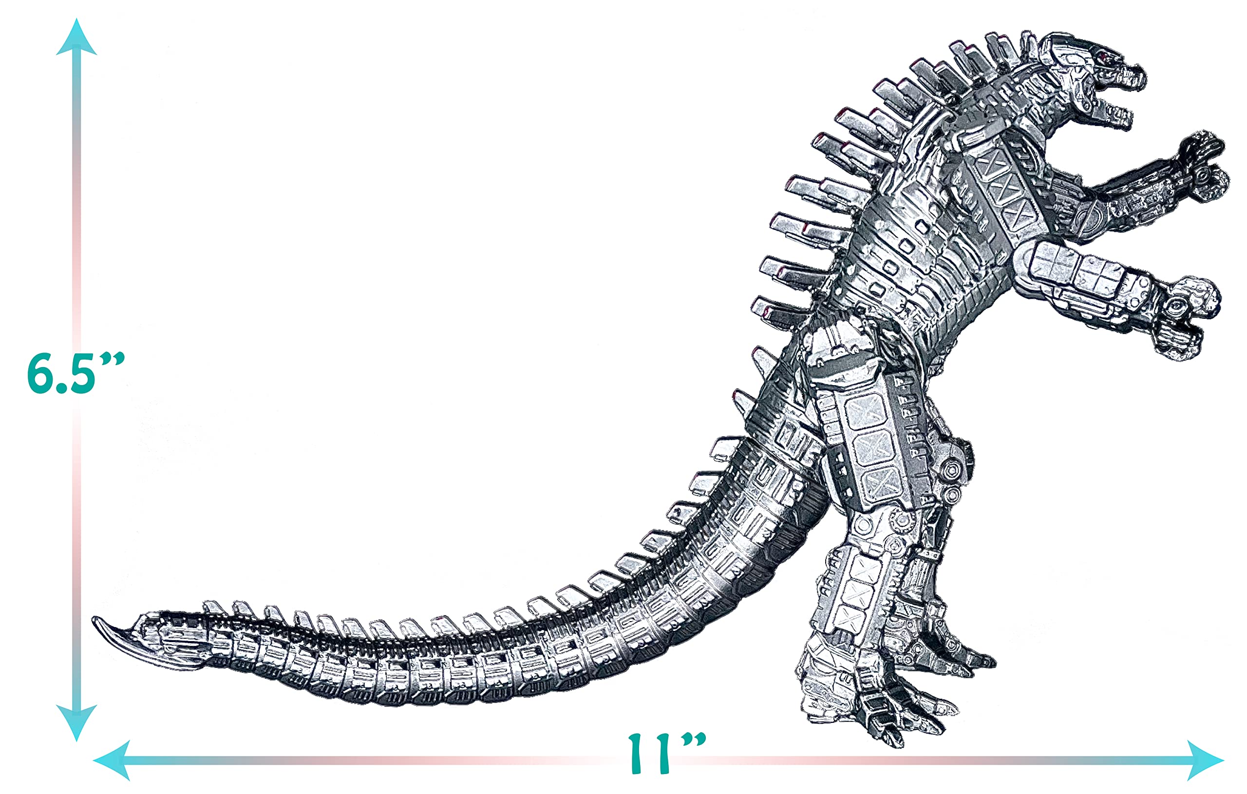 - Godzilla stands 6.5 inches tall and 11 inches length