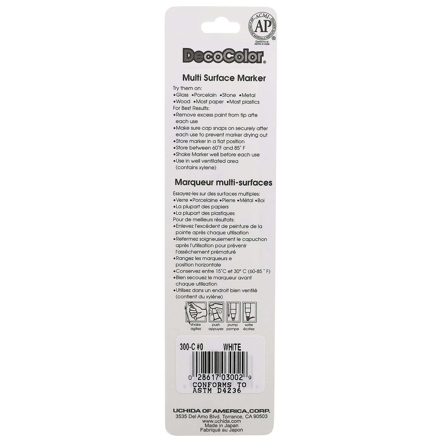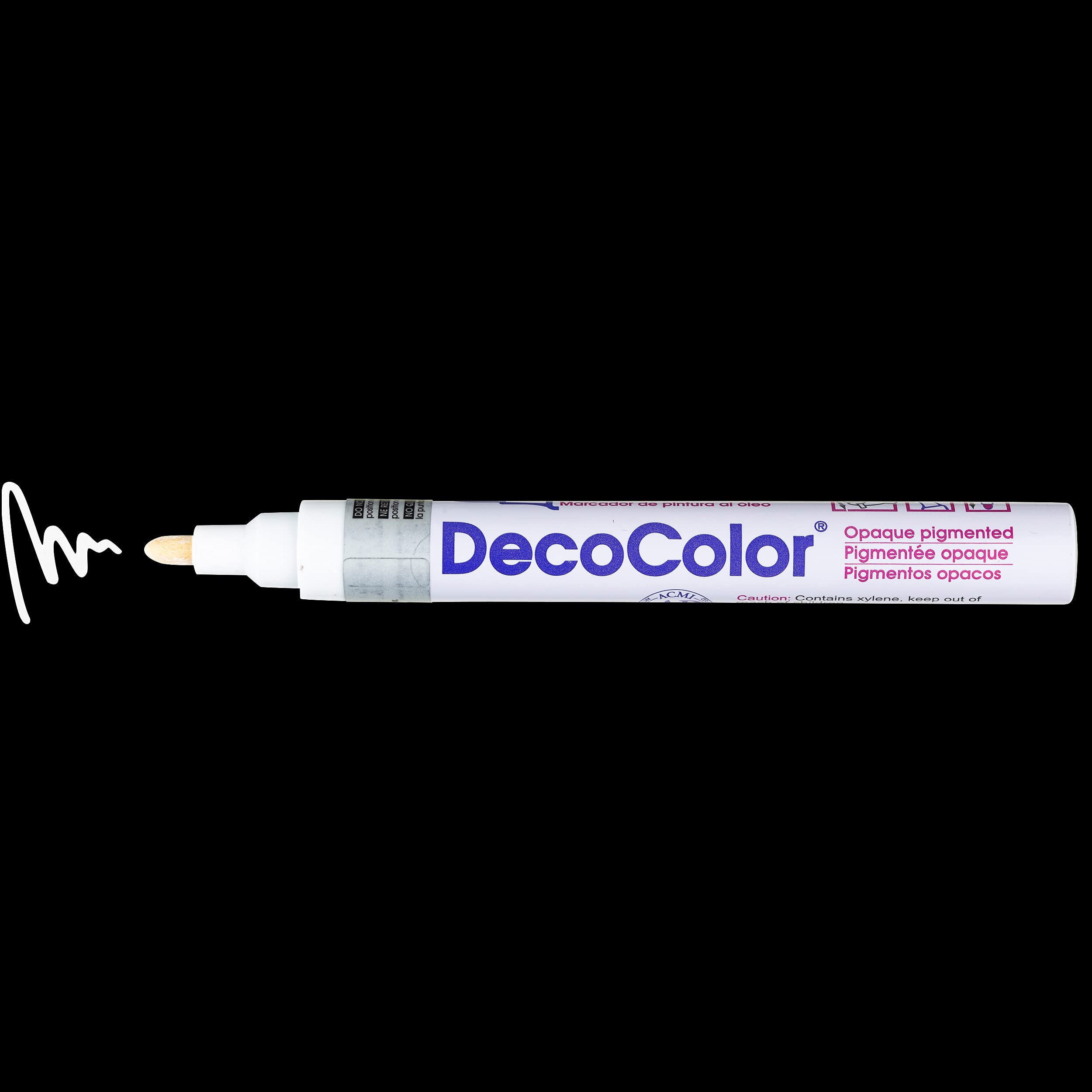 This Deco Color broad point paint markers are great for writing and covering larger areas on glass, paper, wood, clay, porcelain, stone, metal and mirrors. The paint is opaque and xylem based. Its oil based formula allows for a gloss finish to any project. It is lead free, acid free, lightfast, weatherproof and pigmented. Great for crafting, home and office use. This conforms to ASTM D4236 standard and comes in carded packing. Available in white color. Measures 3/4-inch length by 2-inch width by 7-1/4-inch height.