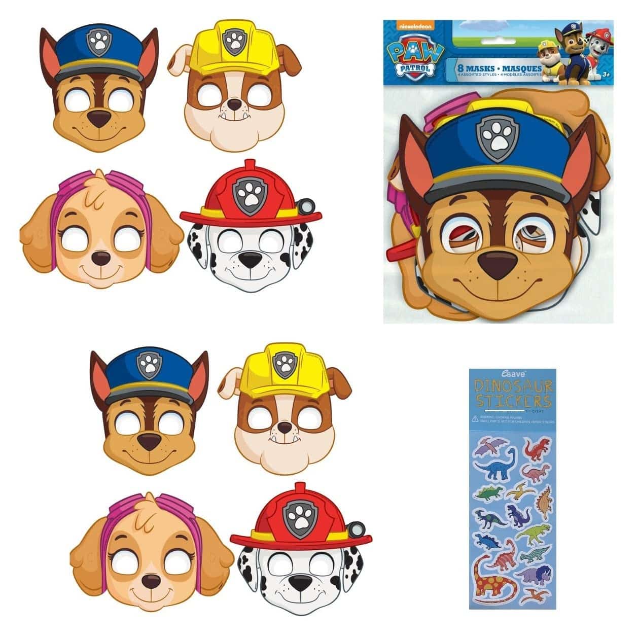 Paw Patrol Birthday Party Supplies Decoration Bundle Includes 16 Kid’s Party Paper Masks, 1 Esave Dinosaur Sticker Sheet (Not Paw Stickers).