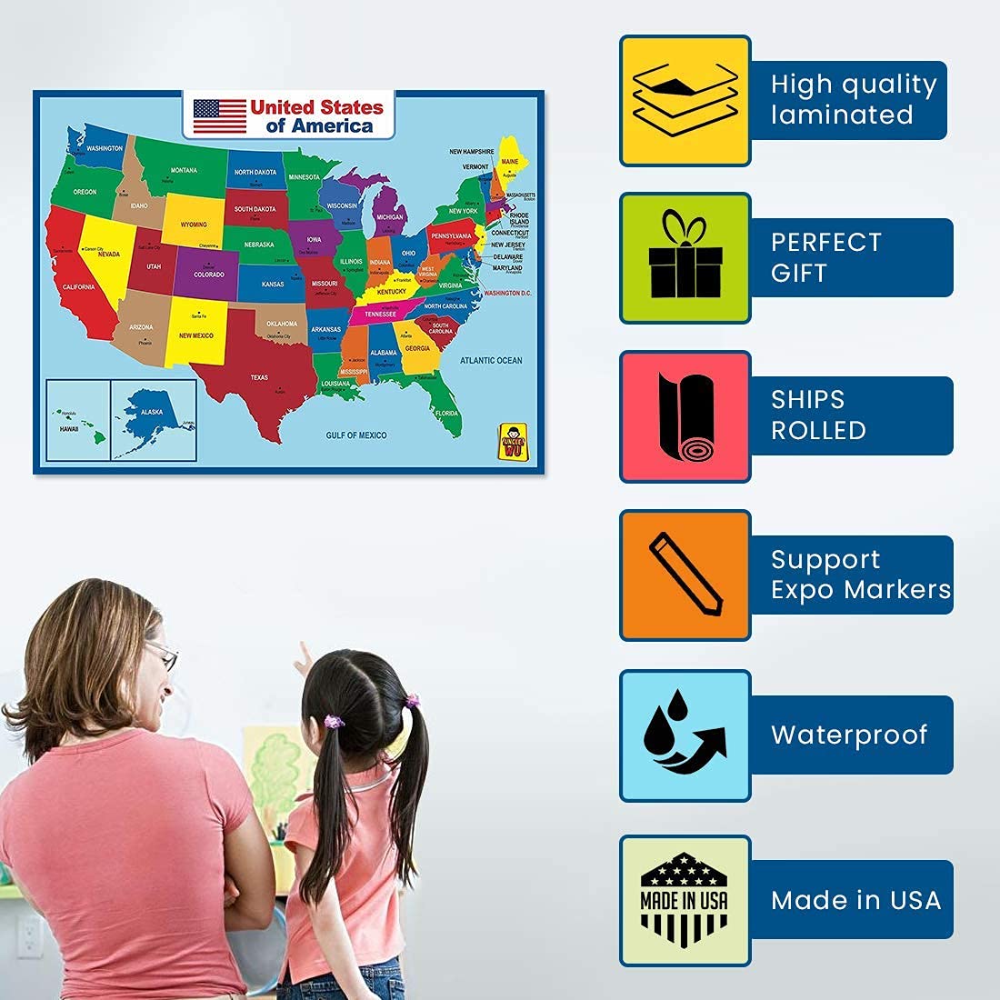 Original price was: ₹2,257.₹1,672Current price is: ₹1,672.United State Map Laminated Poster -Double Side Educational Poster For Kids/Adults -18 x 24