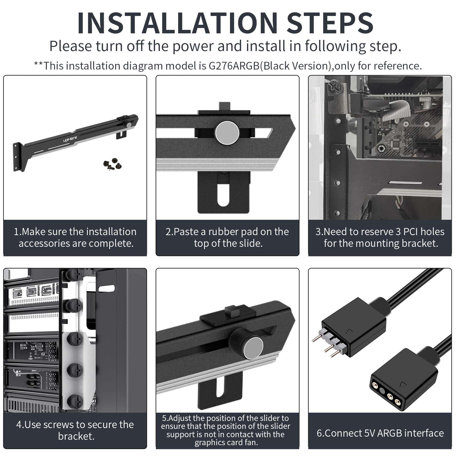 - 05.What You Get: G276WTARGB GPU Holder,our worry-free 12-month warranty and friendly customer service.