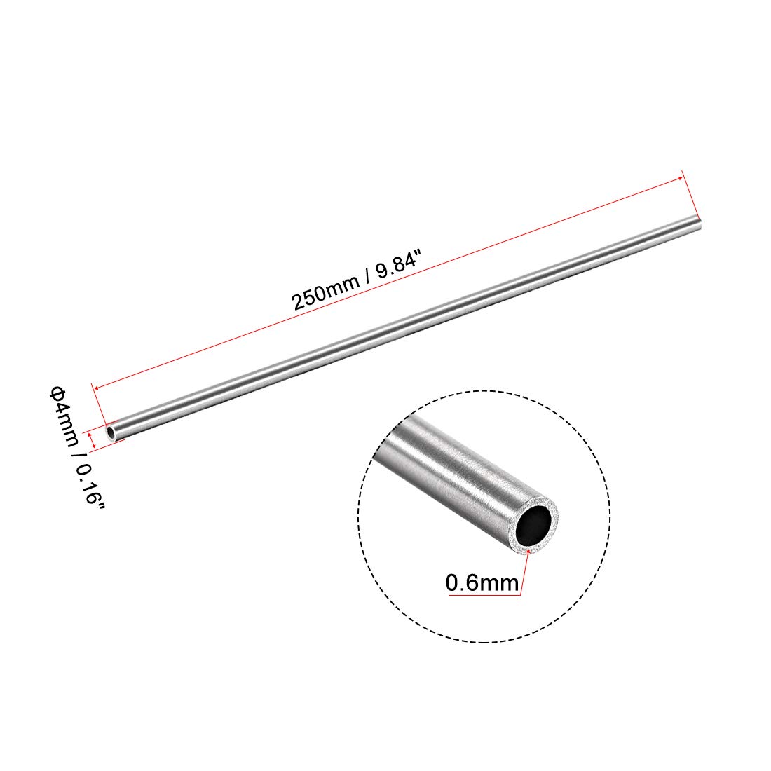 - [304 Stainless Steel Tube] – Our round metal tube is 4mm in outer diameter, 2.8mm in inner diameter, 0.6mm in wall thickness, and 250mm in total length.