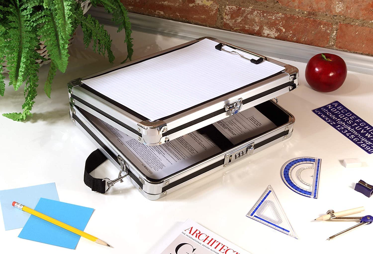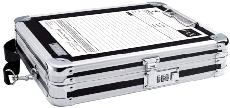 Perfect For Securing And Protecting Sensitive Information. Combination Lock Provides Security, While Chrome Steel Reinforced Corners And Aluminum Trim Offer Solid Protection. High Tension Clip Holds Documents On Front, And Roomy Internal Storage Compartment Holds Documents Within. Velcro Document Belt Inside Keeps Papers From Moving Around, And Mesh Organizer Pockets Are Perfect For Supplies And Other Belongings. A Shoulder Strap Is Included As A Comfortable Carrying Option. The Key-Hole On The Back Enables The Clipboard To Be Hung On The Wall. The Writing Surface Is Very Smooth.