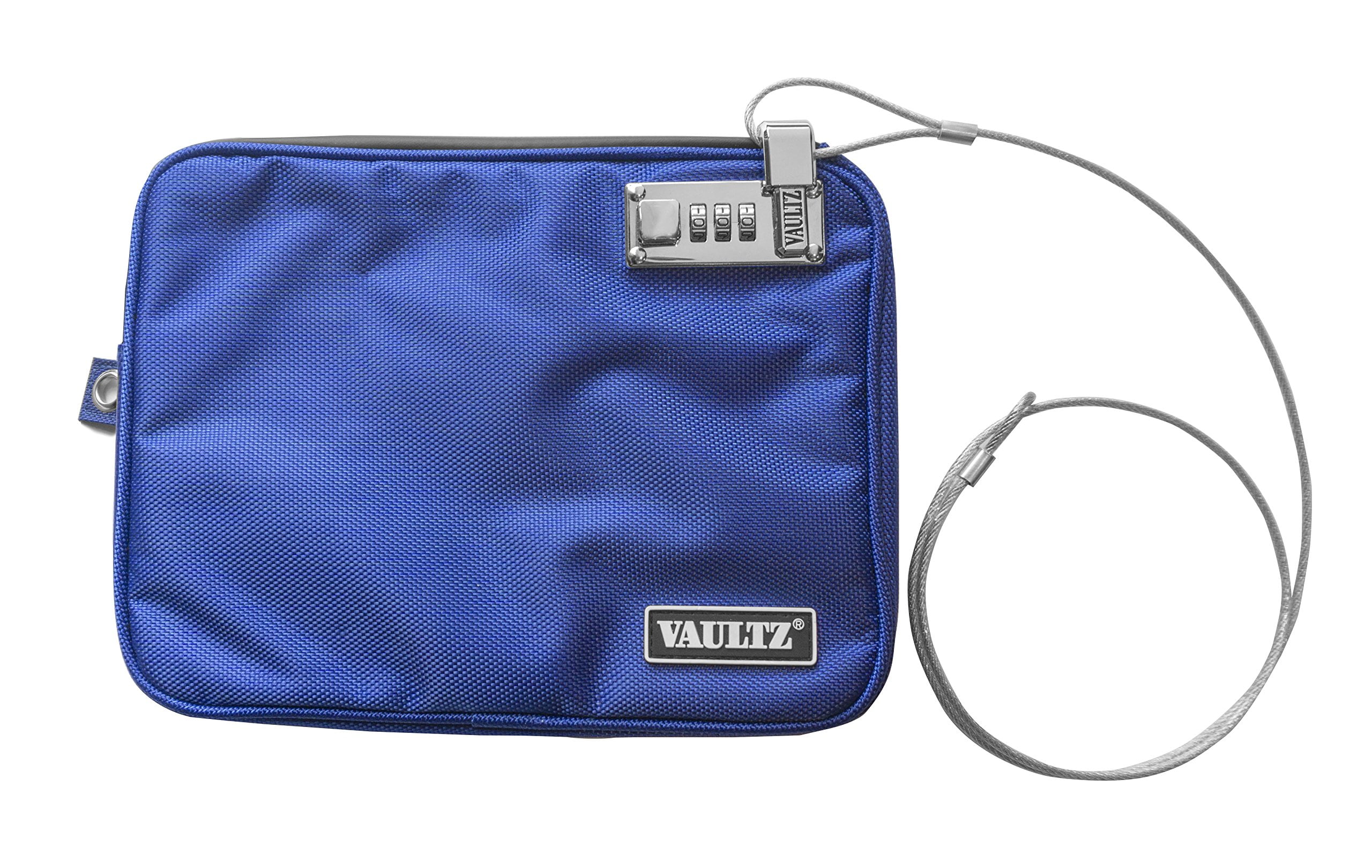 Vaultz offers a wide range of fashionable security storage products that allow you to store, transport and protect the things that are important to you. Secure and protect your valuables at the pool in this padded, locking, ballistic nylon zipper pouch! Each pouch is also great for wallets, cash, medication, jewelry and hotel keys. The 7.5″ x 9.5″ pouch is sized perfectly for Kindles, E-Readers and other mini e-readers. The water-resistant nylon and water-proof zipper will keep your valuables dry. You can even set your own combination for the patent-pending zipper lock. Also included is our Vaultz Double Loop Tether cable that allows you to easily secure the locked pouch to stationary object so no one walks off with it. If it s important, play it safe and LOCK IT UP! with Vaultz.