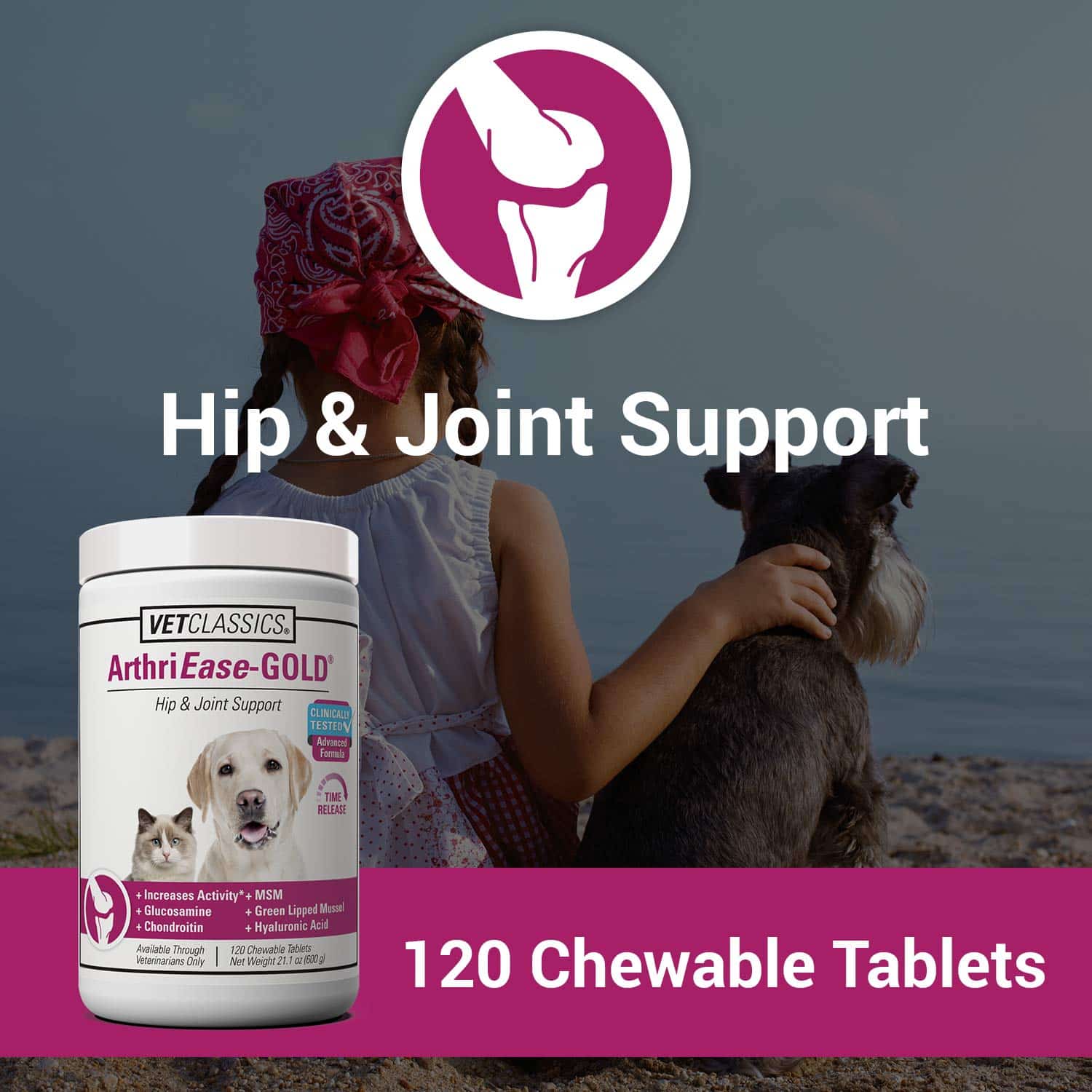 - ANTIOXIDANT-RICH PET JOINT SUPPORT: Veterinarian formulated and recommended for dogs and cats, ArthriEase Gold Hip and Joint Support is rich in antioxidants with a science-based formula to support joint movement, cartilage health and lubrication of joints.