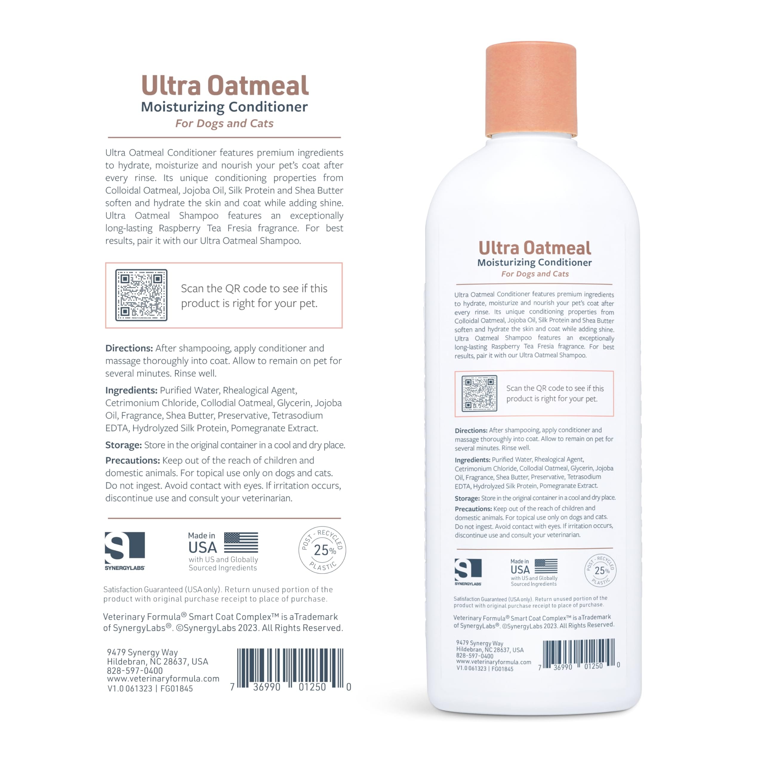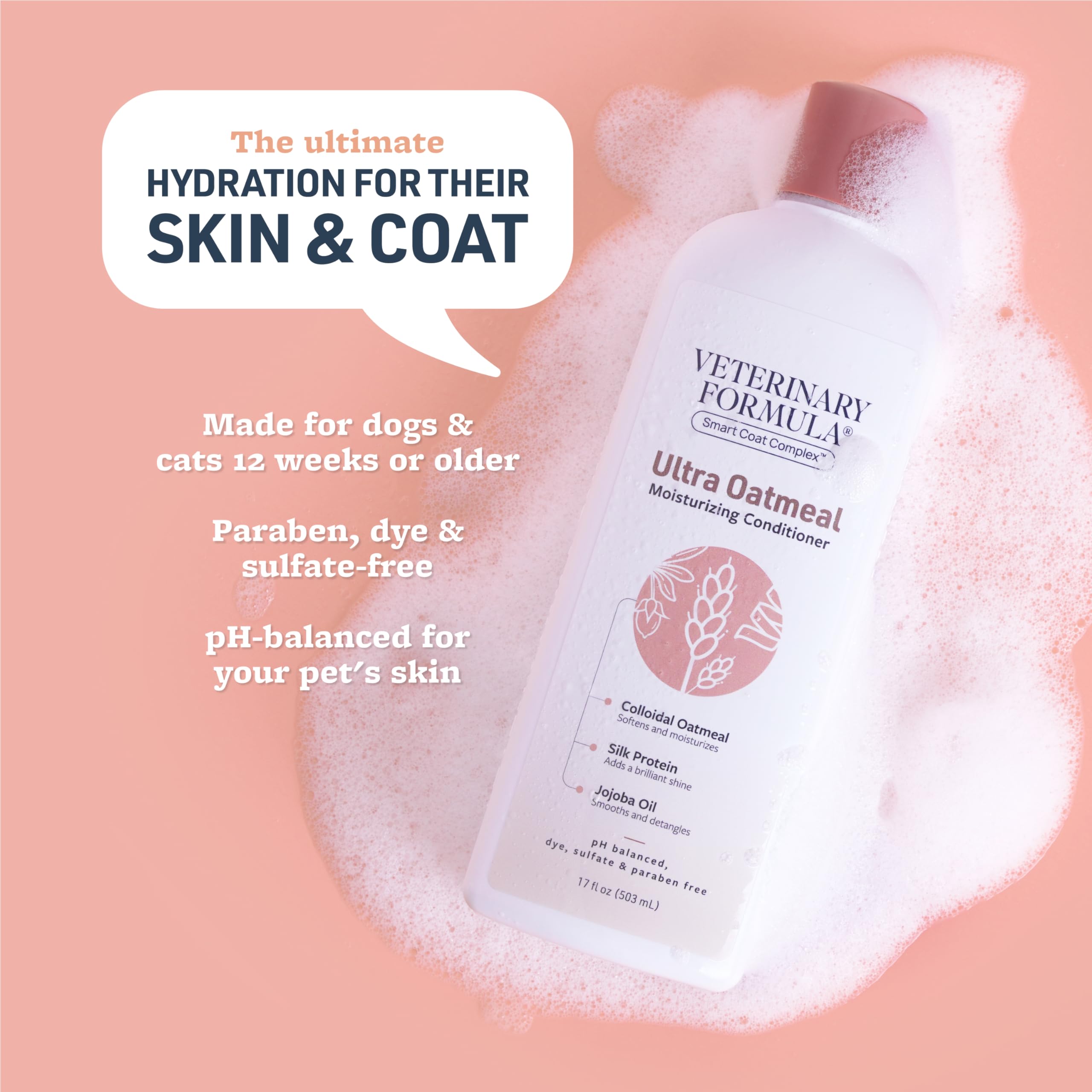 - FORMULATED FOR DOGS ? Ultra Oatmeal Conditioner is pH balanced for your pet?s sensitive skin. It will not wash away topical spot-on flea and tick treatments. For an even healthier coat, use with Ultra Oatmeal Moisturizing Shampoo.