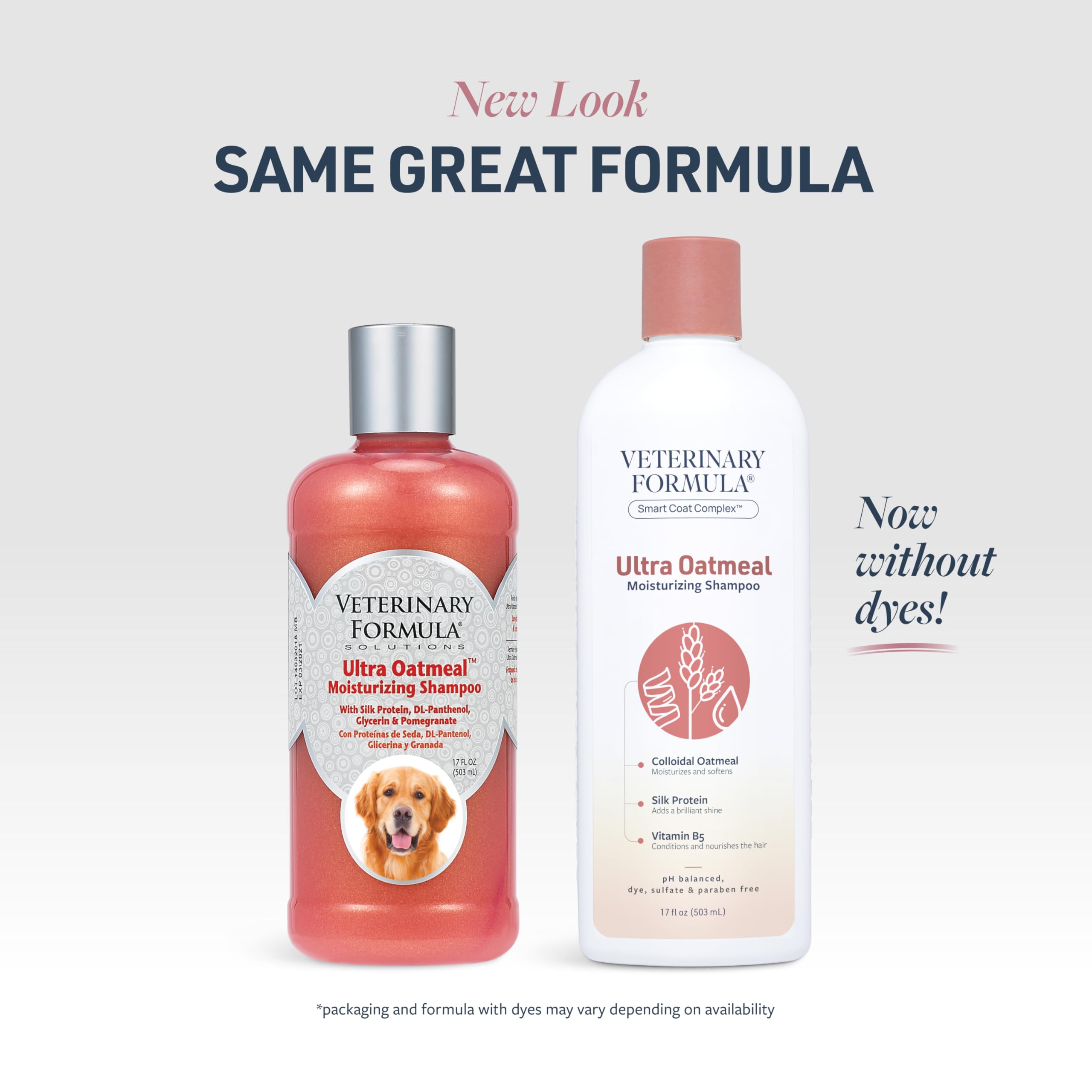 - FORMULATED FOR DOGS ? Our oatmeal shampoo for dogs is sulfate-free, pH balanced, and is now dye-free for sensitive skin. Pair it with our oatmeal dog conditioner for the softest, shiniest coat ever.