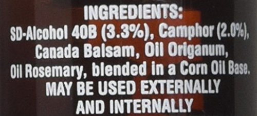 Relief and Prevention of Colds, Roup, Scaly Legs and Eye Worm. It is also an effective conditioner for show preparations. It is for both internal and external applications but should always be used in accordance with the doseage on the label. Can be for all poultry including chicken, turkeys and game birds. Active Ingredientes: Contains alcohol, Canada balsam, camphor, oil of origanum and oil of rosemary in a corn oil base.