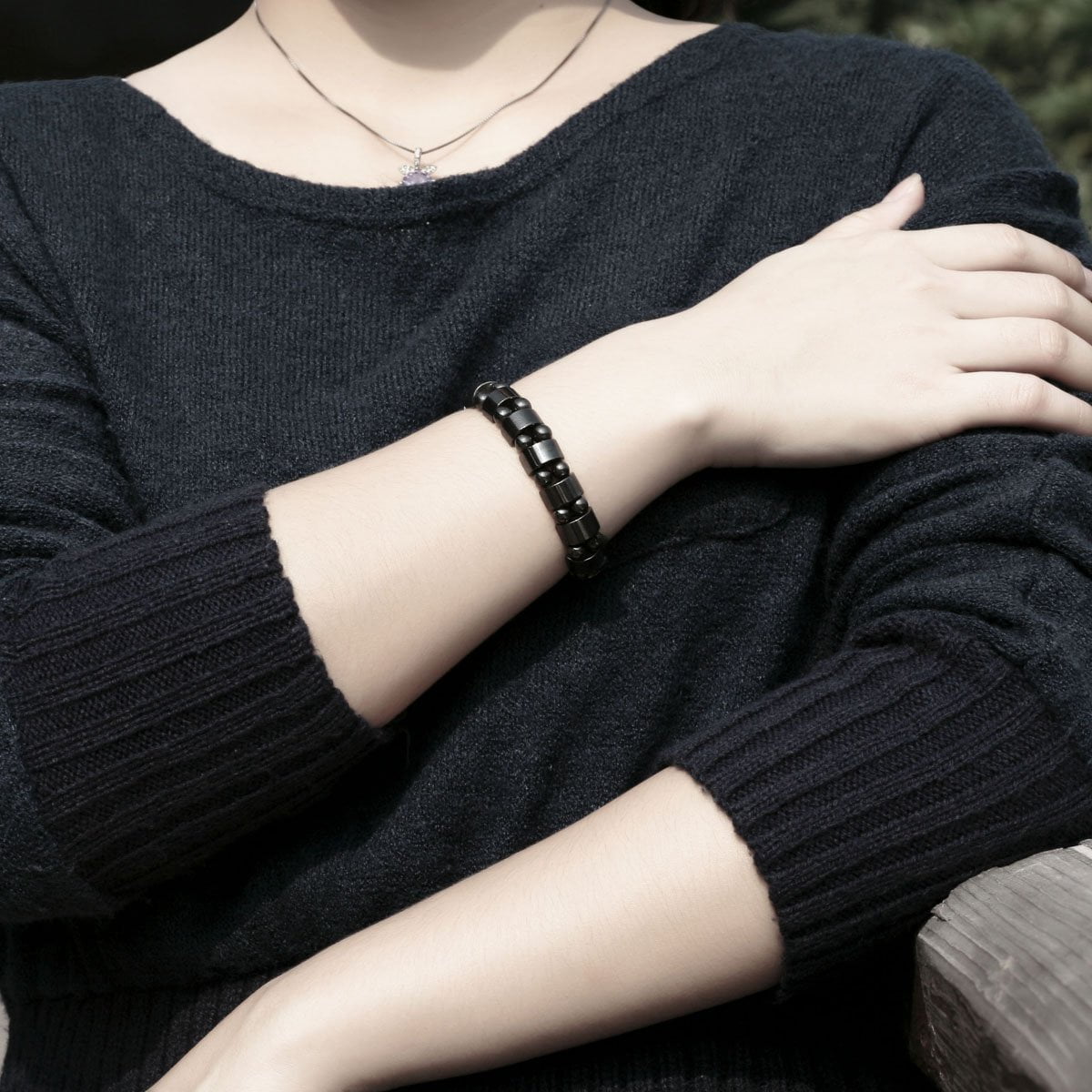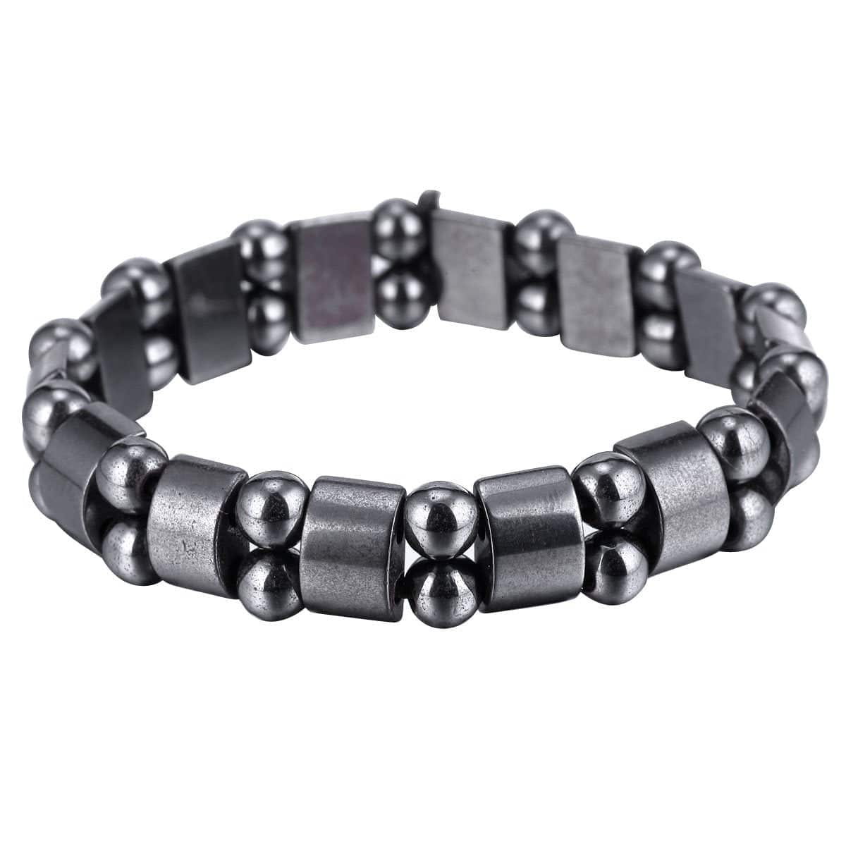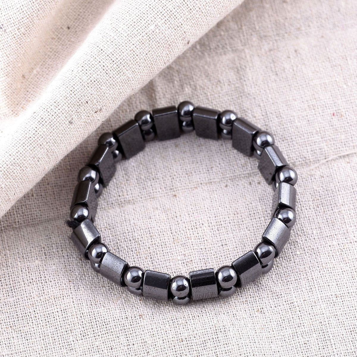 - Genuine wide hematite bead magnetic bracelet. Approx. 7″ and stretches – width 1/2″