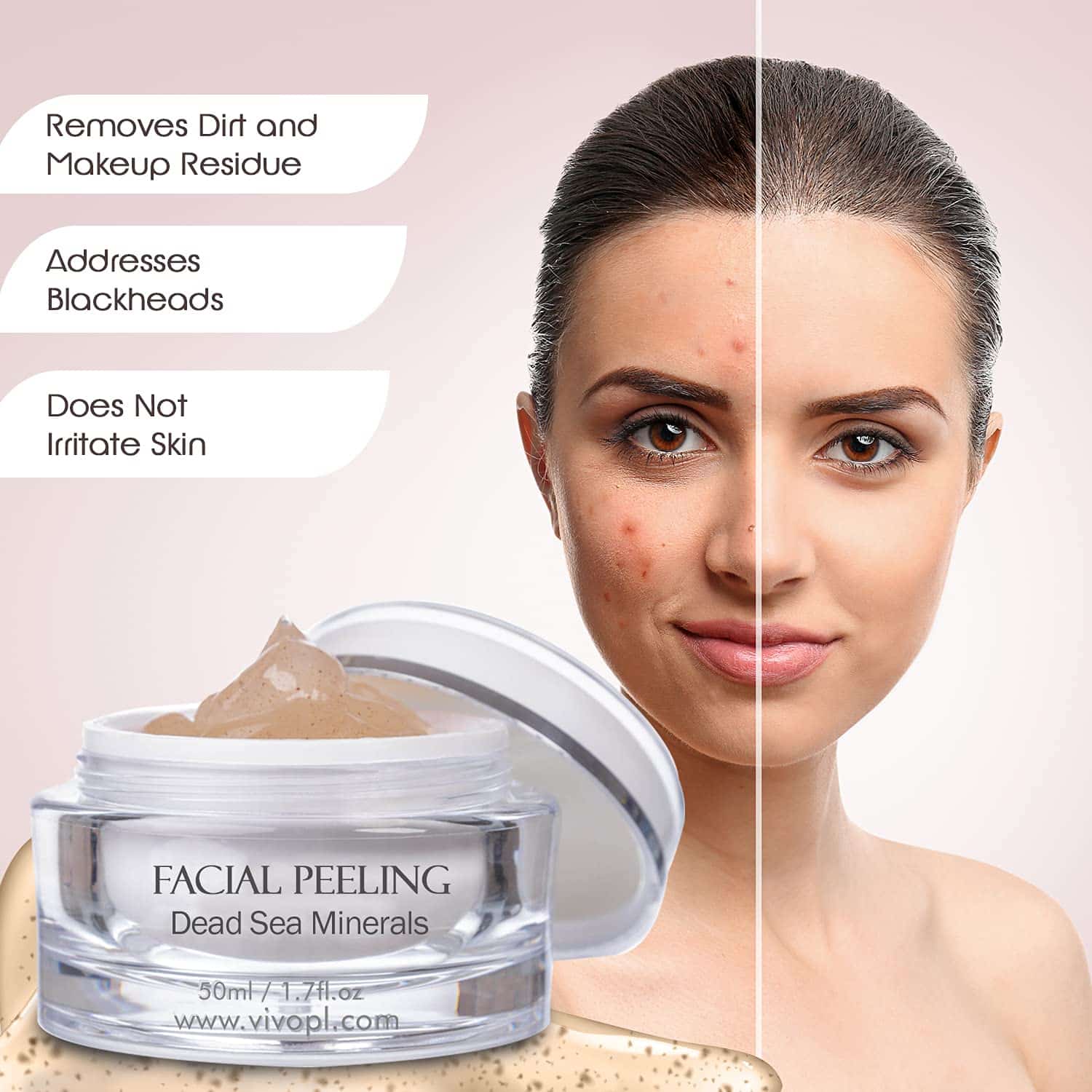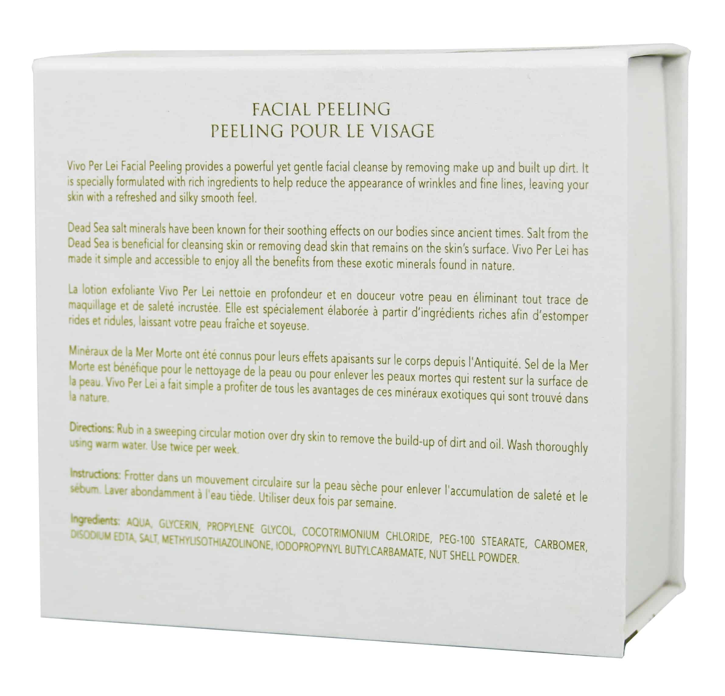 • GENTLY EXFOLIATES – The Vivo Per Lei Facial Peeling Gel exfoliates gently without hurting or irritating skin. The Dead Sea Facial scrub works well even on dry, oily or sensitive skin.