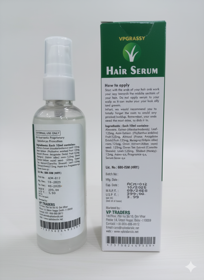 Original price was: ₹399.₹239Current price is: ₹239.VP Grassy Herbal Hair Oil 100ml – Stronger, Thicker & Nourished Hair