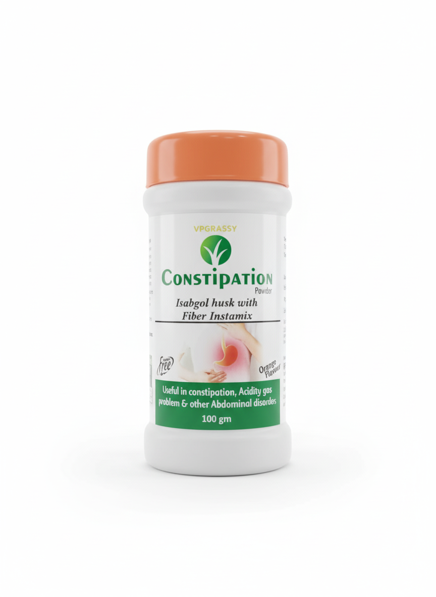 VP Grassy Constipation Powder 100gm is a carefully crafted natural digestive support formula designed to relieve constipation and promote healthy bowel movement. Made from fiber-rich and herbal ingredients, it helps soften stool, improves intestinal motility, and provides gentle yet effective relief from chronic or occasional constipation.