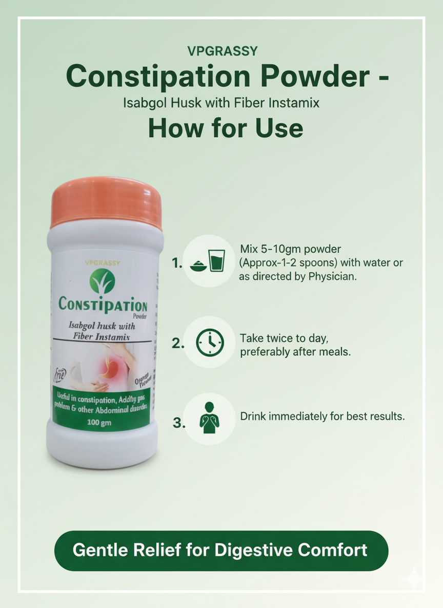 VPGRASSY Constipation Powder 100gm – Natural Laxative for Constipation Relief, Smooth Digestion & Regular Bowel Movement