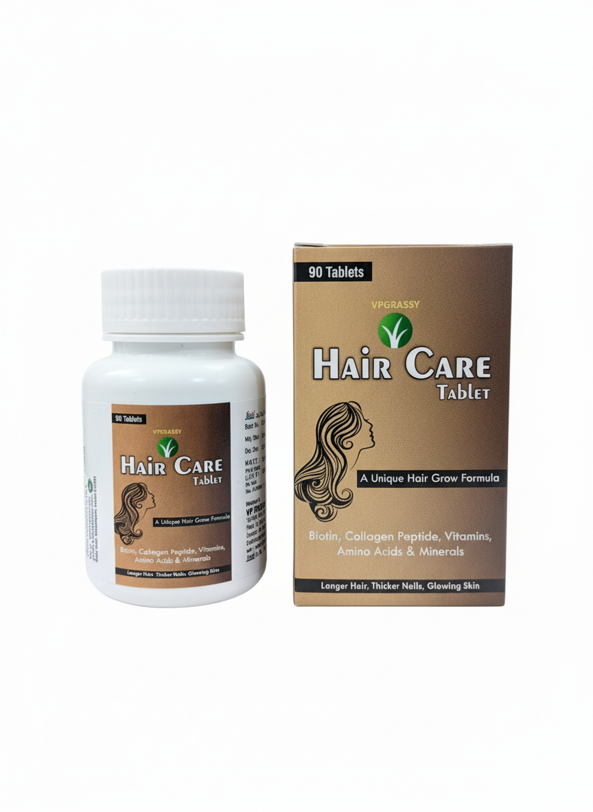 VP Grassy Hair Care Tablets (90 Tablets) are specially formulated to support strong, healthy, and nourished hair from within. These tablets combine the power of essential vitamins, minerals, and Ayurvedic herbs that help reduce hair fall, promote new hair growth, and improve overall scalp health.