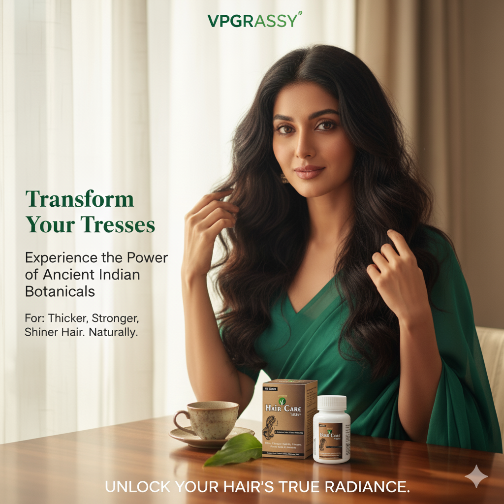 Original price was: ₹899.₹539Current price is: ₹539.VPGRASSY Hair Care Tablets – 90 Tablets | Supports Hair Growth, Reduces Hair Fall & Strengthens Roots
