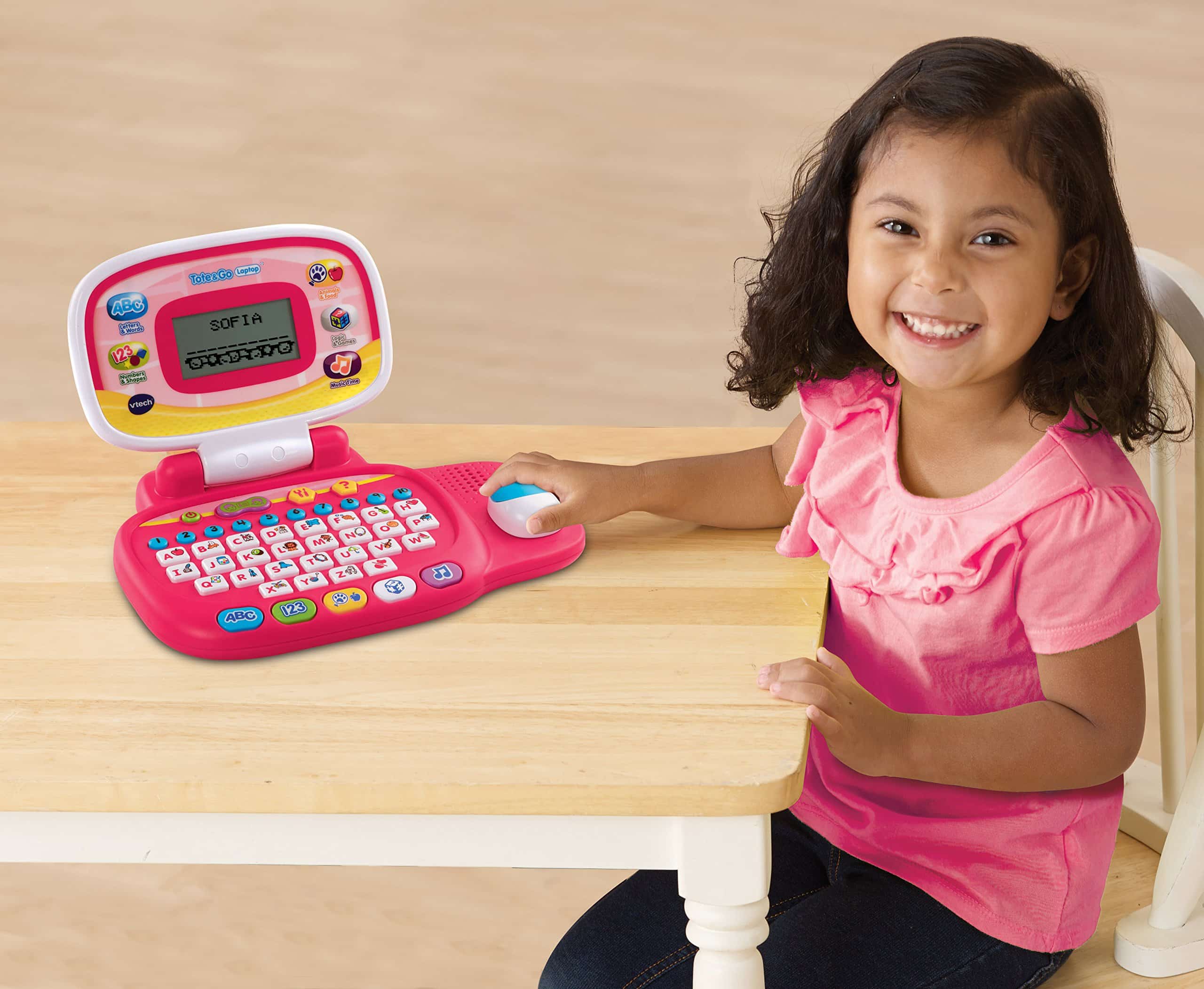 Learn and grow on the go with the VTech tote & go laptop Pink. This kids’ Laptop offers 20 interactive activities with progressive learning levels that teach a variety of subjects. Children can also customize it with their name, age, avatar, favorite tunes and more.