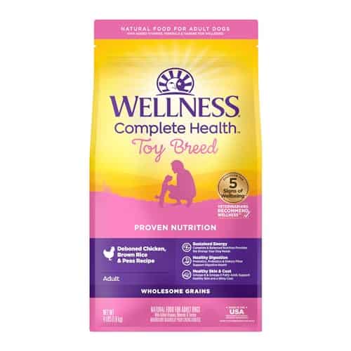 Original price was: ₹2,793.₹1,751Current price is: ₹1,751.Wellness Complete Health Toy Breed Dry Dog Food with Grains, Chicken & Rice, 4-Pound Bag (Packaging may vary)