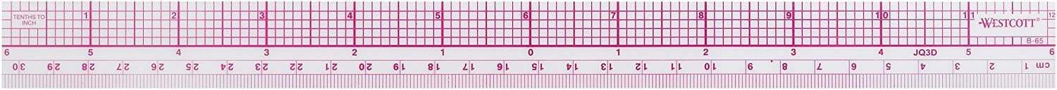 Westcott 10ths/Metric Beveled Ruler, 12-Inch/30cm is laminated for durability and features a translucent color to allow for viewing through to the page. Zero center helps you find the middle point quickly and accurately by aligning the zero so that the same measurement appears on both sides of zero. Westcott Drafting & Drawing Tools are some of the finest products of their kind for students and professionals. Our commitment to meticulous quality and cutting edge innovation in measurement and art materials has earned an unparalleled reputation.