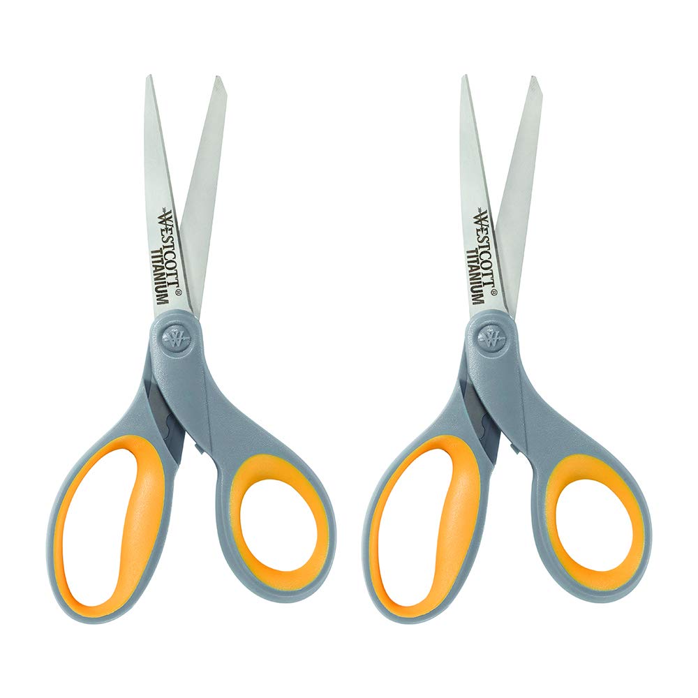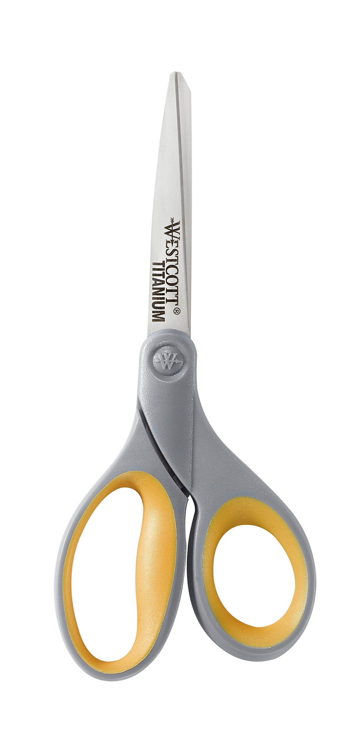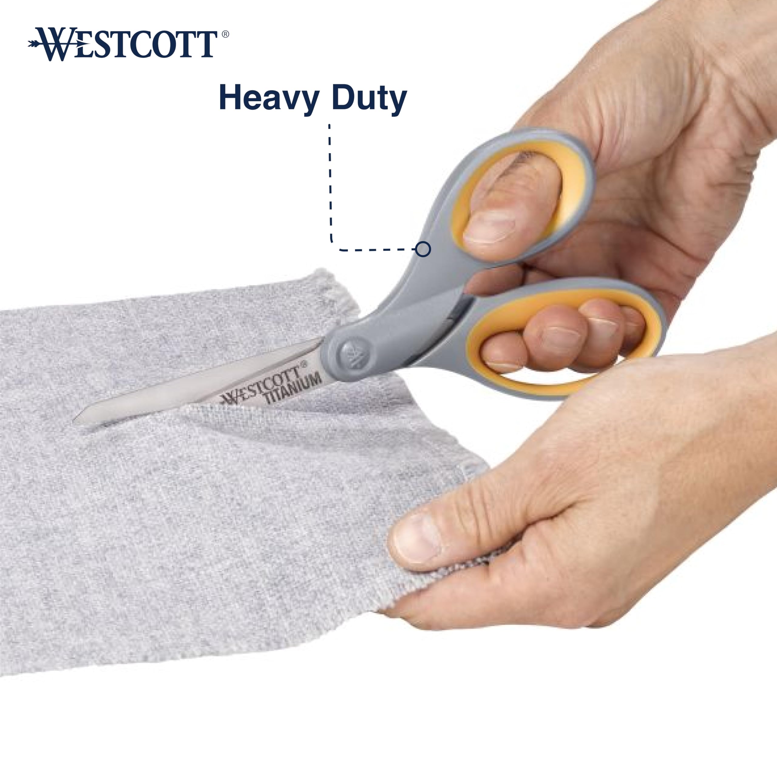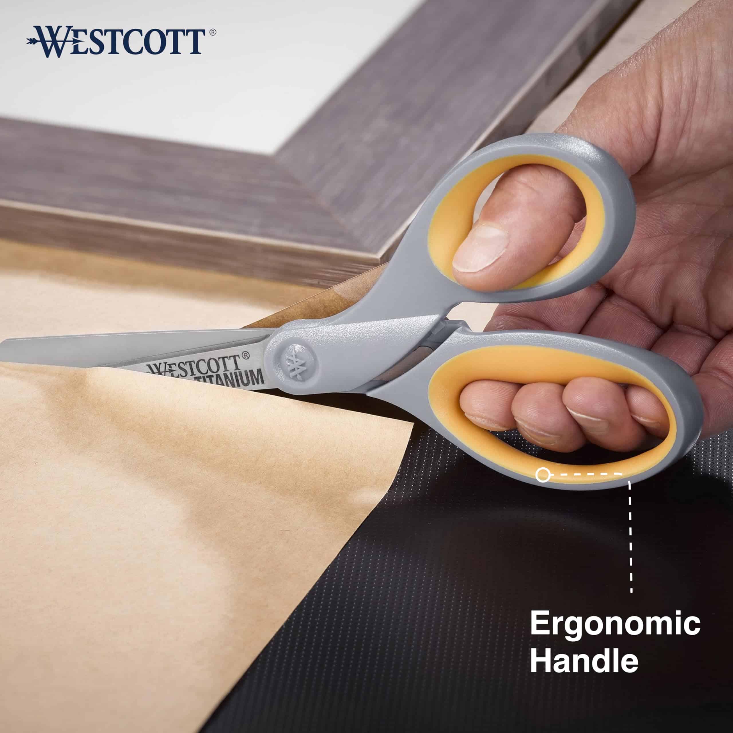Westcott Titanium-Bonded Scissors are lighter, stronger, and sharper than other home or office shears. Lightweight yet durable enough for any cutting job, Westcott scissors feature high-performance titanium-bonded blades that boast three times the strength of stainless steel and resist corrosion. Ideal for cutting paper, cardboard, lightweight line, fabric, and other materials, these all-purpose scissors feature straight handles with a contoured soft handle for enhanced comfort. Westcott, the leader in cutting technology, brings you a coordinated assortment of all the essential tools you need to bring your ideas to life.
