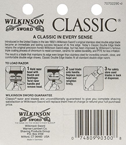 Superior value for a high quality razor blade, Wilkinson Classic blades fit any standard double edge safety razor. Long lasting, chromium-ceramic-PTFE coated blades with a fine edge are much more economical than cartridges. Maintains it’s edge longer for a smooth, close and comfortable sahve. Each package is sealed and contains 5 blades. Each blade is individually wrapped in wax paper. Manufactured in Germany under strict quality standards.