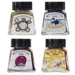 Winsor & Newton Drawing Inks have been used by illustrators since their introduction in the 1890’s, where the main requirement was brilliance of color. Today they are formulated from a series of soluble dyes in a superior shellac solution. These inks can be applied with brush, dip pen or airbrush and are widely used by designers, calligraphers and artists as well as illustrators. All colors in the Winsor & Newton line of Drawing Inks are fully intermixable and they are easily diluted (with distilled water). Fast drying and water resistant, they have excellent adhesion on most surfaces.