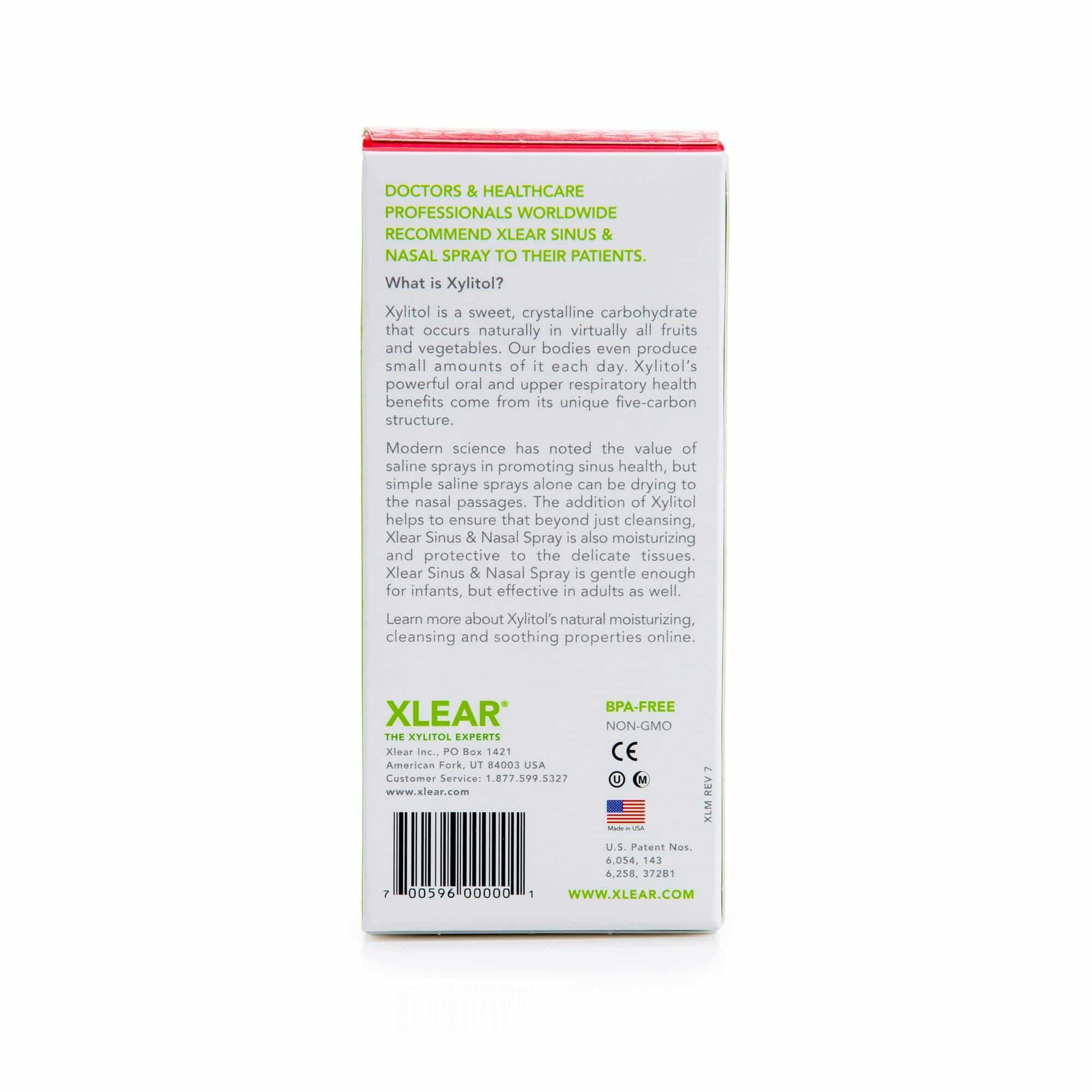 Xlear Natural Saline Nasal Spray with Xylitol, 1.5 fl oz (Pack of 3) – Xlear’s secret is the patented, natural saline spray containing xylitol – an ingredient that cleanses and moisturizes. Normal saline nasal sprays can dry out the nasal passage, actually leaving it more irritated and susceptible to external contaminants. But with the addition of xylitol, Xlear Saline Nasal Spray with xylitol will moisturize and soothe your sinus and nasal passages. Xylitol also has cleansing benefits; it almost acts like soap for your nose. The industry-leading formula alleviates congestion and also prevents other pollutants from sticking to nasal tissues. Now you can naturally promote upper respiratory health while alleviating congestion with Xlear Saline Nasal Spray with xylitol! Made in the United States. Directions: Remove the clear safety cap from the bottle. Prior to initial use, prime the pump by holding it upright and pumping one or more times until the solution is dispensed. Clear the nasal passages by gently blowing your nose prior to using Xlear Saline and Xylitol Nasal Spray. Insert the nozzle into the nostril and depress the pump completely while breathing in through your nose. Spray 2-4 times in each nostril. Clean the nozzle after each use and replace the safety cap. For best results, use at least twice daily; morning and night. The natural, drug-free formula is non-addictive and is safe to use as often as needed for optimal health to cleanse sinuses and nasal passages. Warnings: The use of this container by more than one person may spread infection. Keep out of the reach of children. Clean the nozzle after each use and replace the cap. Helps cleanse sinus and nasal passages and wash away potentially harmful pollutants, allergy-causing pollens, and other irritants. Soothes and moisturizes dry, irritated nasal passages due to colds, allergies, low humidity, overuse of nasal decongestants, and other nasal irritations.