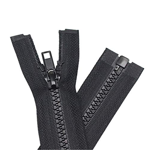 YaHoGa 2PCS #5 26 Inch Separating Jacket Zippers for Sewing Coats Jacket Zipper Black Molded Plastic Zippers Bulk (26″ 2pcs)