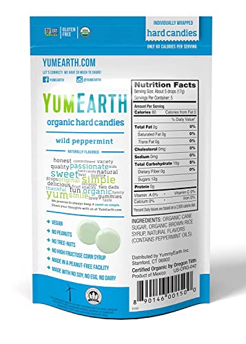 Organic Drops Wild Peppermint – 3.3 oz,(Yummy Earth) (1 Pack), Yummy Earth Organic Wild Peppermint Candy Drops – 3.3 oz