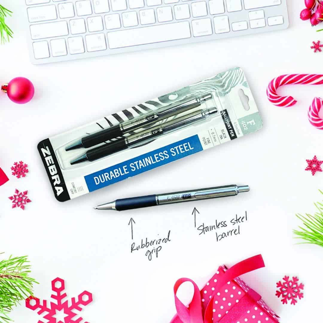 Zebra Pen F-402 Retractable Ballpoint Pen is sleek, sophisticated and easy to sanitize. This elevated metal pen combines the simplicity of a stainless steel barrel with a weighted experience for enhanced writing comfort. The refillable F-402 has a metal plunge, clip and cone for an executive look. Retractable ballpoint pen has black ink and a 0.7mm fine point tip. Corrosion resistant, stainless steel barrel is easier to sanitize than plastic. Rubberized comfort grip matches barrel accents. Metal clip readily attaches to a notebook, planner, work bag or briefcase pocket. This attractive pen is perfect for home, school or office. Clean and stylish, this trusted pen is suitable for boardrooms, courtrooms, classrooms, medical settings, offices and job sites. It?s the right pen for any job.